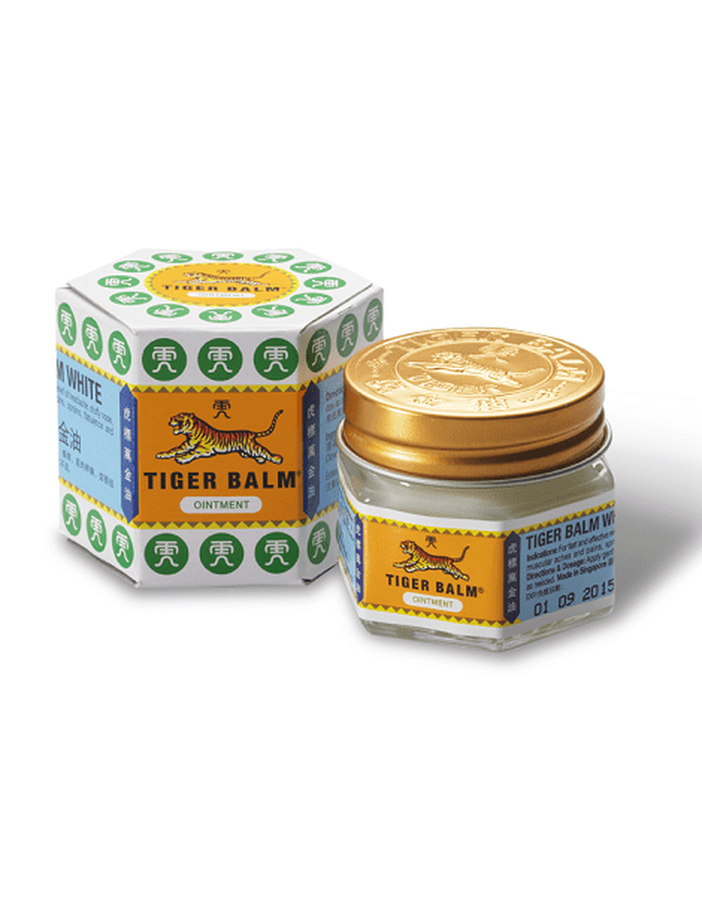 Тигровый бальзам белый. Обладает теми же свойствами, что и «Красный бальзам Тигр», только более мягкий. Из-за отсутствия экстракта красного чили перца, разогревающий эффект слабее. Мягкость белого бальзама позволяет использовать его на слизистой оболочке переносицы, не испытывая сильного жжения.