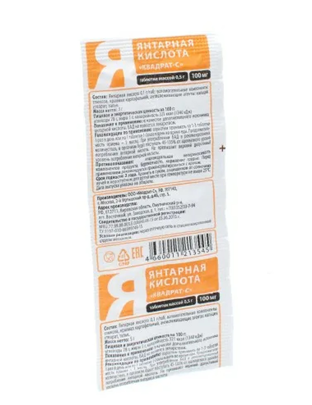 Янтарная кислота после приема внутрь хорошо всасывается в желудочно-кишечном тракте, проникает в кровь и ткани, где окисляется до углекислого газа, который выводится с выдыхаемым воздухом.