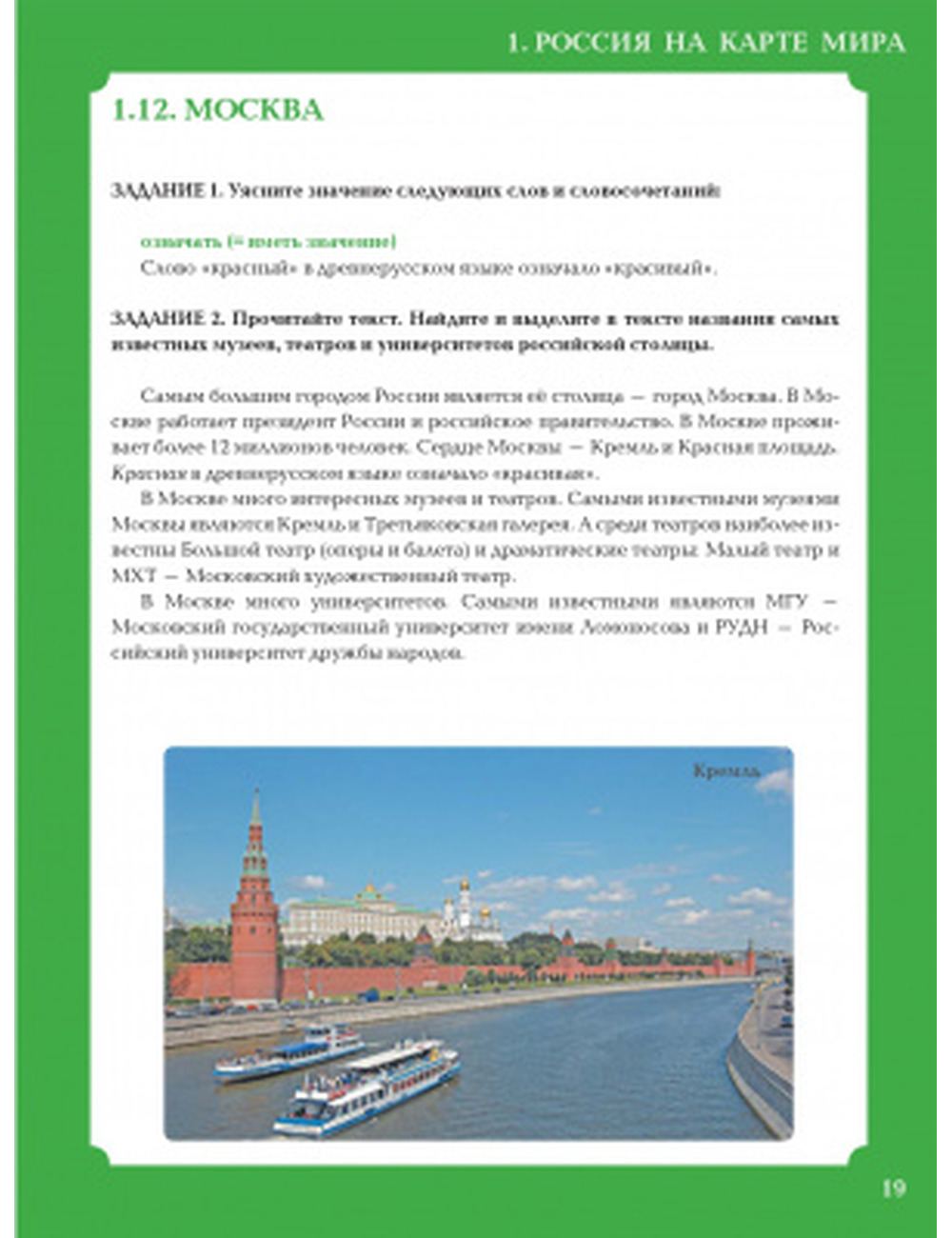 Пособие по чтению и страноведению предназначено для владеющих русским языком как иностранным или вторым родным. Знакомит с географией и историей России, ее современным политическим устройством и общественной жизнью, с образом жизни современных русских.