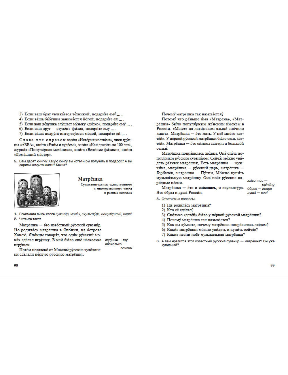 Значительная часть текстов написана специально для «Шкатулочки» и публикуется впервые. Структура книги соответствует программе элементарного уровня, новые грамматические формы вводятся в текстовый материал постепенно и последовательно. В конце пособия читатель найдет несколько текстов повышенного уровня сложности (раздел «Для тех, кто хочет знать больше слов»).