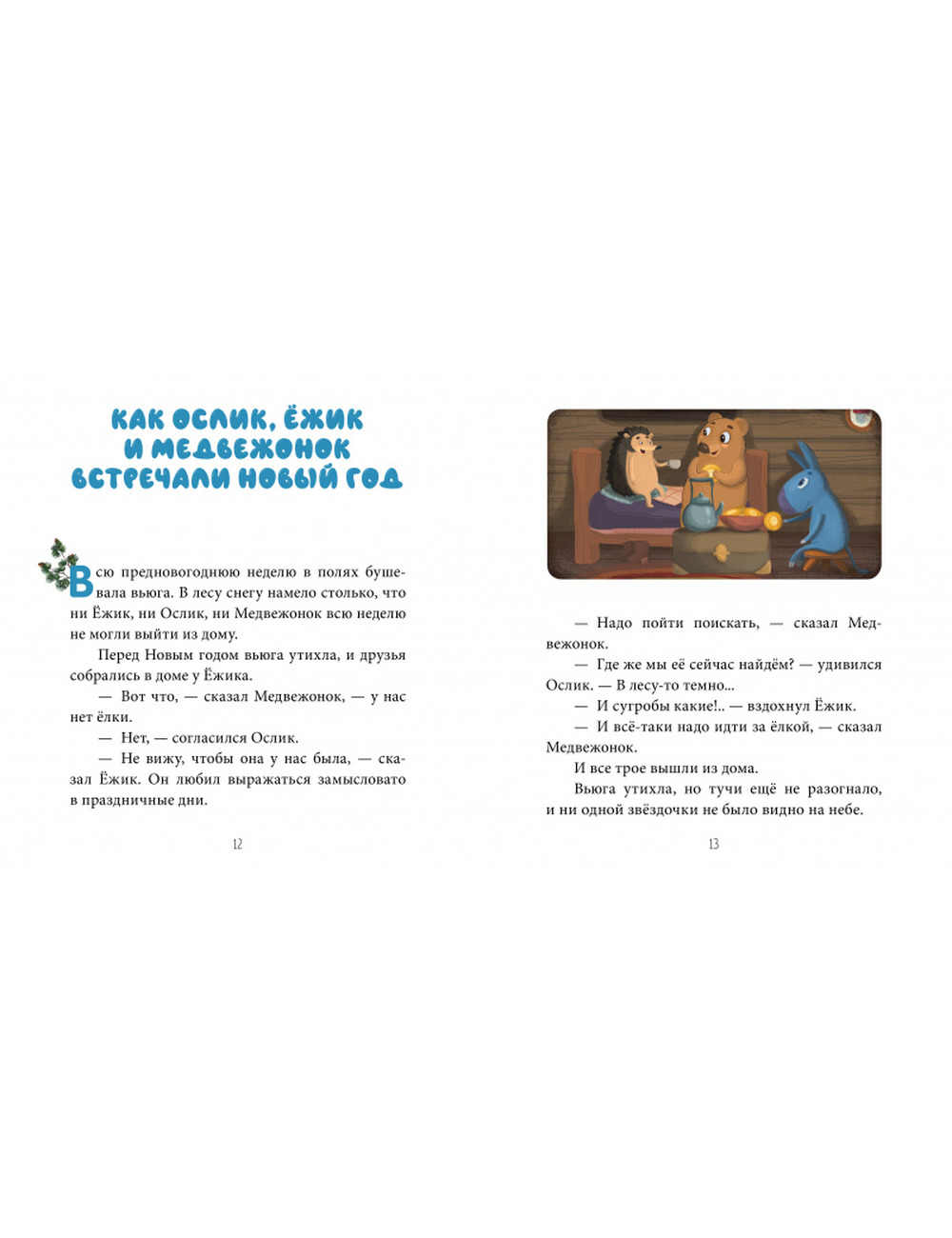 Сказки из книги «Как Ослик, Ежик и Медвежонок встречали Новый год» идеально подойдут для чтения в возрасте 1–3 года, помогут развить речь, воображение, умение дружить и находчивость.