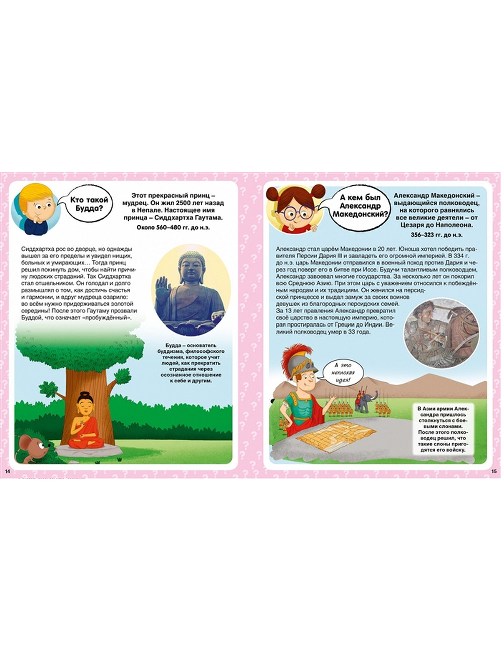 В этой книге представлены знаменитые исторические личности — правители, изобретатели, учёные, художники, писатели, архитекторы и космонавты. Чем же прославились эти люди? Некоторые из них внесли значительный вклад в науку или способствовали развитию медицины. Другие стали у истоков технического прогресса и явили миру чудесные произведения искусства.