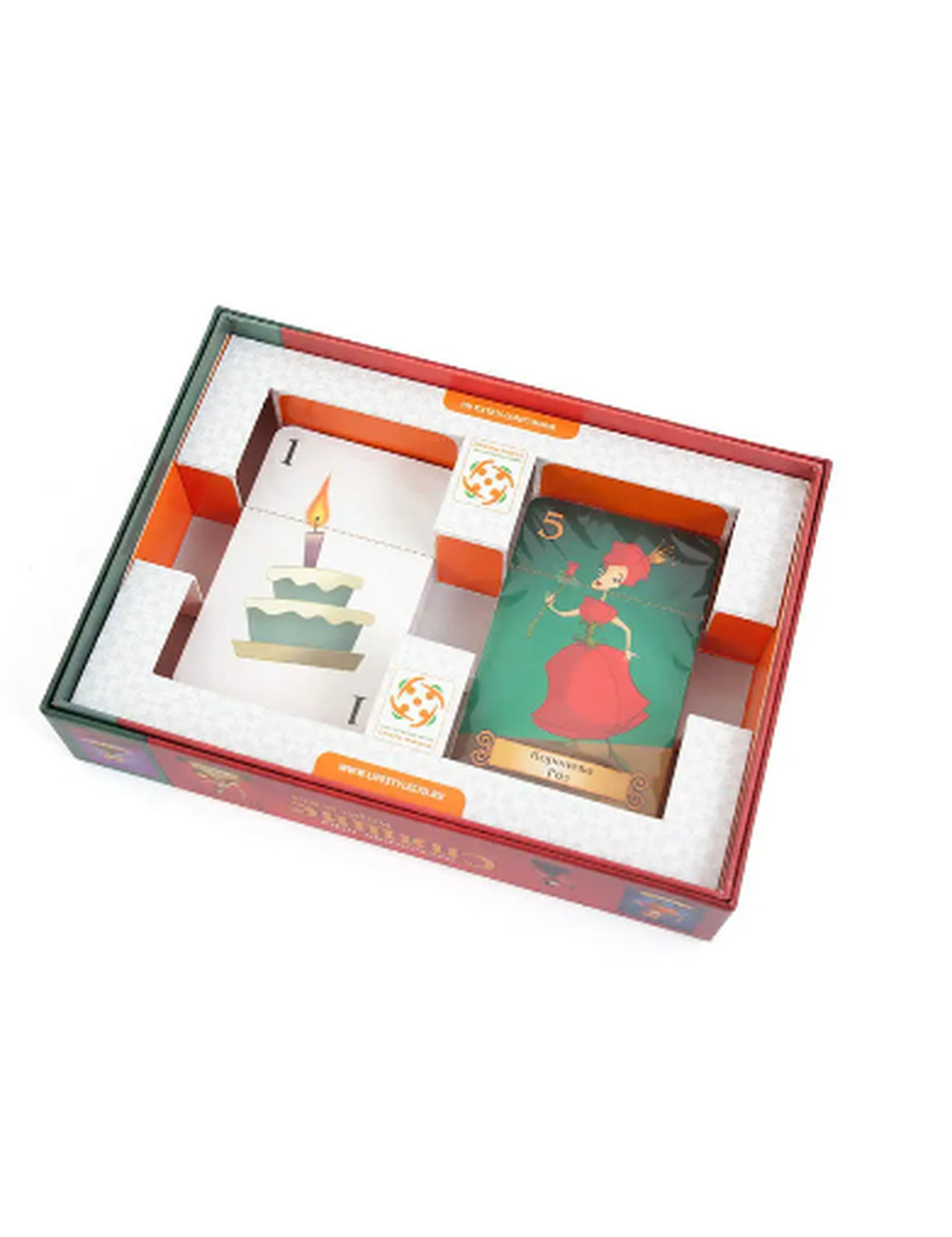 Проснитесь и играйте! Королева Роз, Королева Тортов и десять их ближайших подруг заснули, поддавшись сонным чарам, и именно вам предстоит разбудить их. Используйте сообразительность, память и навыки сложения, чтобы стряхнуть с дремлющих знатных особ их королевский сон. А помогут вам в этом Короли: Огненный, Шахматный, Черепаший... Сыграйте рыцаря, чтобы украсть красотку Королеву у другого игрока или положитесь на ловкость рук шута. Но берегитесь сонных зелий и коварных драконов! В крайнем случае примените волшебную палочку. Победа достанется тому, кто разбудит больше всех королев! Игра рекомендована известным детским психологом Валентиной Паевской. В состав настольной игры Спящие королевы входят: 79 карт (12 карт красавиц королев, 8 королей, 5 шутов, 4 рыцаря, 4 сонных зелья, 3 волшебные палочки, 3 дракона, 40 карт с цифрами от 1 до 10) Время игры 10-15 минут Мир игр шире чем Монополия Monopoly Уно Uno Морской бой Имаджинариум Карты игральные Лото Дженга Башня Покер Шашки Шахматы
