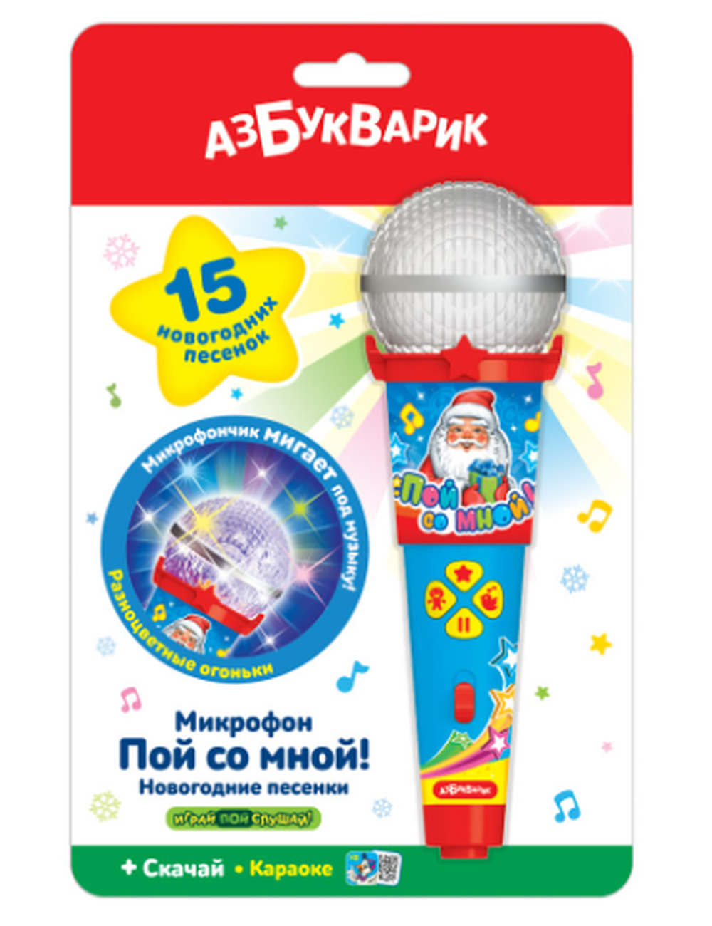 Этот удивительный микрофон превратит новогодний праздник в настоящее шоу! Он светится под музыку, как настоящий диско-шар! Слушай и пой 15 детских хитов («Ёлочка», «Белые снежинки», «Песенка Деда Мороза» и др.).