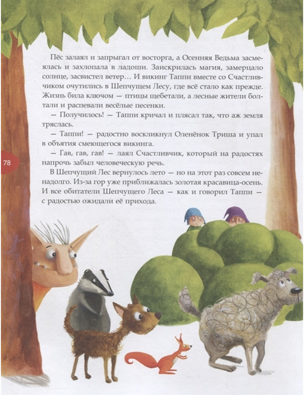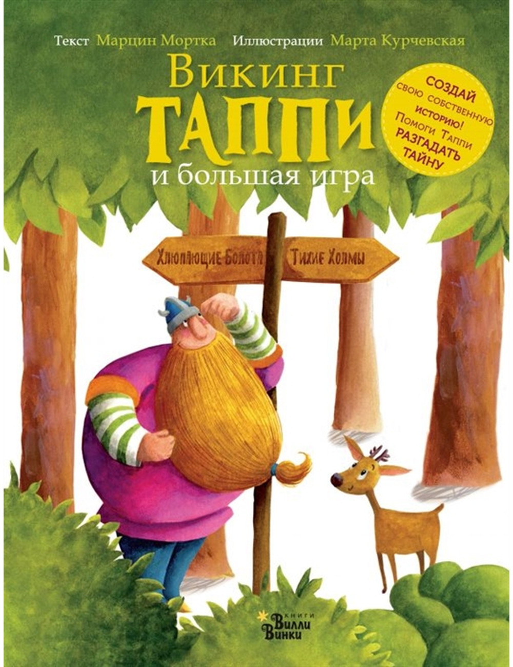 Однажды викинг Таппи проснулся очень поздно. Он ужасно удивился, ведь каждое утро его будило радостное чириканье лесных птичек. Почему же на улице воцарилась такая необыкновенная тишина? Да и деревья ведут себя как-то странно. Наверное, кто-то заколдовал Шепчущий Лес! Таппи просто обязан помочь друзьям и разрушить заклятье. Новая история о приключениях добродушного викинга - это не просто книга, а настоящая игра. В конце каждой главы читателю предстоит ответить на вопрос, что же дальше нужно сделать Таппи и его друзьям: должен ли викинг позавтракать или ему срочно нужно отправиться в гости к Медведю? Поэтому малыши и их родители становятся соавторами истории, меняя сюжет при каждом прочтении.