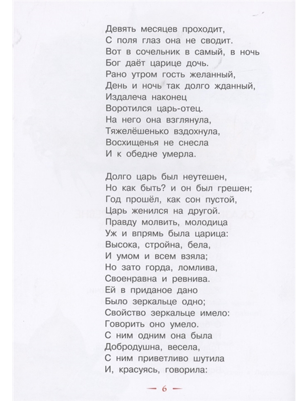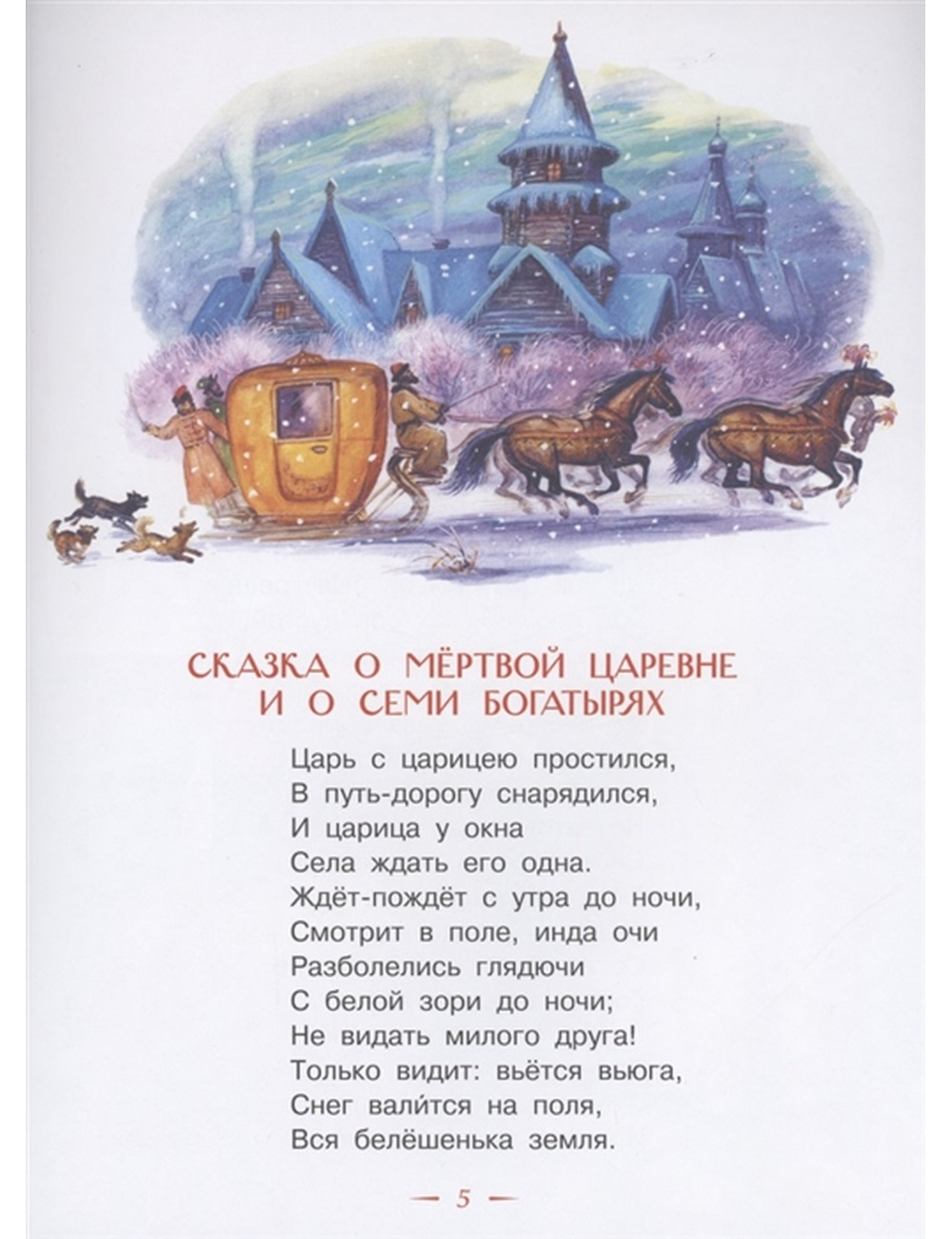 В книгу вошли три знаменитые сказки А.С. Пушкина: "Сказка о мёртвой царевне и о семи богатырях", "Сказка о рыбаке и рыбке" и "Сказка о попе и о работнике его Балде". Самая романтичная из них — о юной царевне, которую мечтает сжить со свету злая мачеха-ведьма. Вся сказка наполнена любовью, побеждающей ревность и ненависть. А вот две другие – почти басни, притчи с моралью: победи свою жадность, пока не поздно, иначе останешься ни с чем…