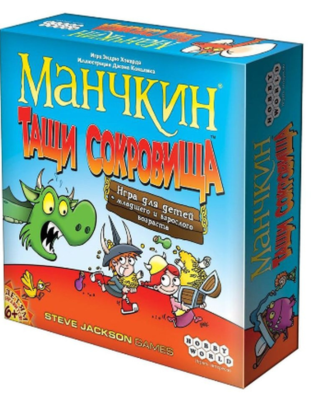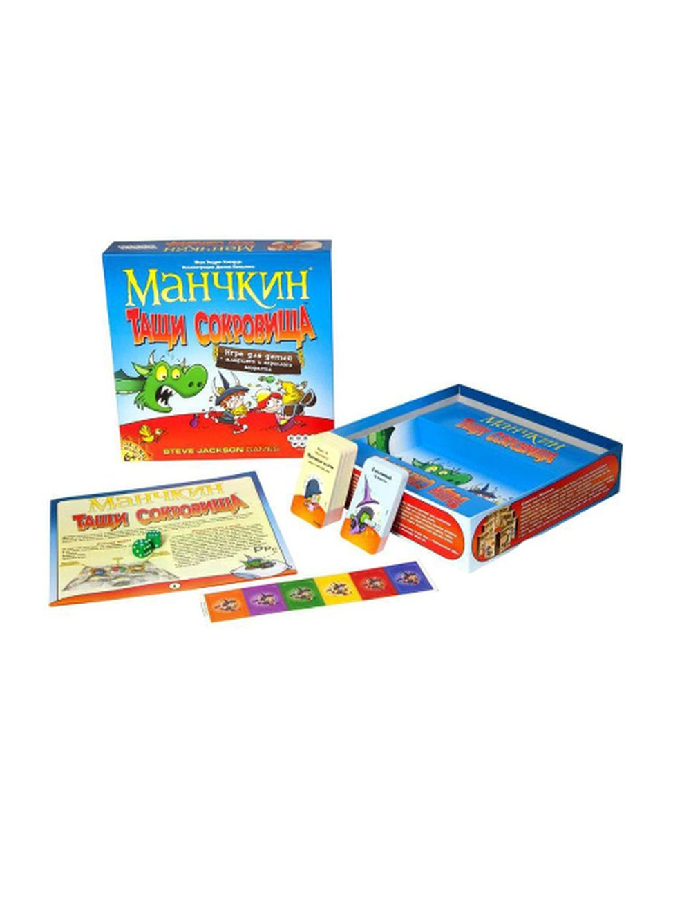 В настольной игре "Манчкин. Тащи Сокровища" манчкины снова отправляются в захватывающее приключение! Наших героев ждёт совершенно новое подземелье с небывалыми сокровищами. Сражайте монстров наповал, хапайте сокровища и помните: настоящий манчкин не доверяет никому! Игра заканчивается, когда из колоды сокровищ берётся последняя карта. После этого все игроки считают стоимость своих сокровищ на руке в голде, которая указана на самих картах. Тот манчкин, у которого стоимость сокровищ наибольшая, становится победителем! Итак, настольная игра "Манчкин" – это ролевая игра по форме, пародия по содержанию. Манчкины игроков ходят по подземелью, вытаскивают на свет божий тамошних чудовищных обитателей и либо раскаиваются в этом, либо получают за победу новые уровни и сокровища. Исход каждого подобного приключения (боя, короче) зависит от того, кто с чем на бой вышел. У игрока это уровень и бонусы/штрафы от шмоток, класса, расы и проклятий. У монстра это уровень плюс карты-усилители и разовые шмотки. Откуда шмотки у монстра? В вашем бою могут принять участие и завистливые соперники: они могут помогать монстру и ослаблять Вас. Поэтому, хотя в "Манчкин" и можно играть вдвоём, наберите на матч побольше народу: на руках будет больше проклятий, усилителей и зелий, которыми так легко изменить баланс сил в бою в любую сторону, и бдительные завистники не дадут никому из Вас выйти в единоличные лидеры гонки к 10-му победному уровню.