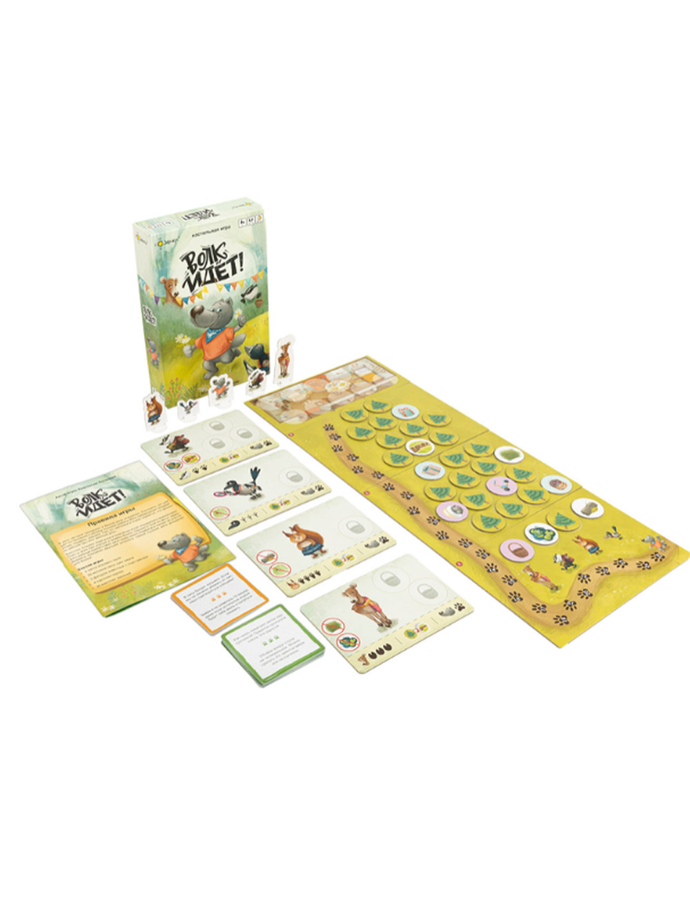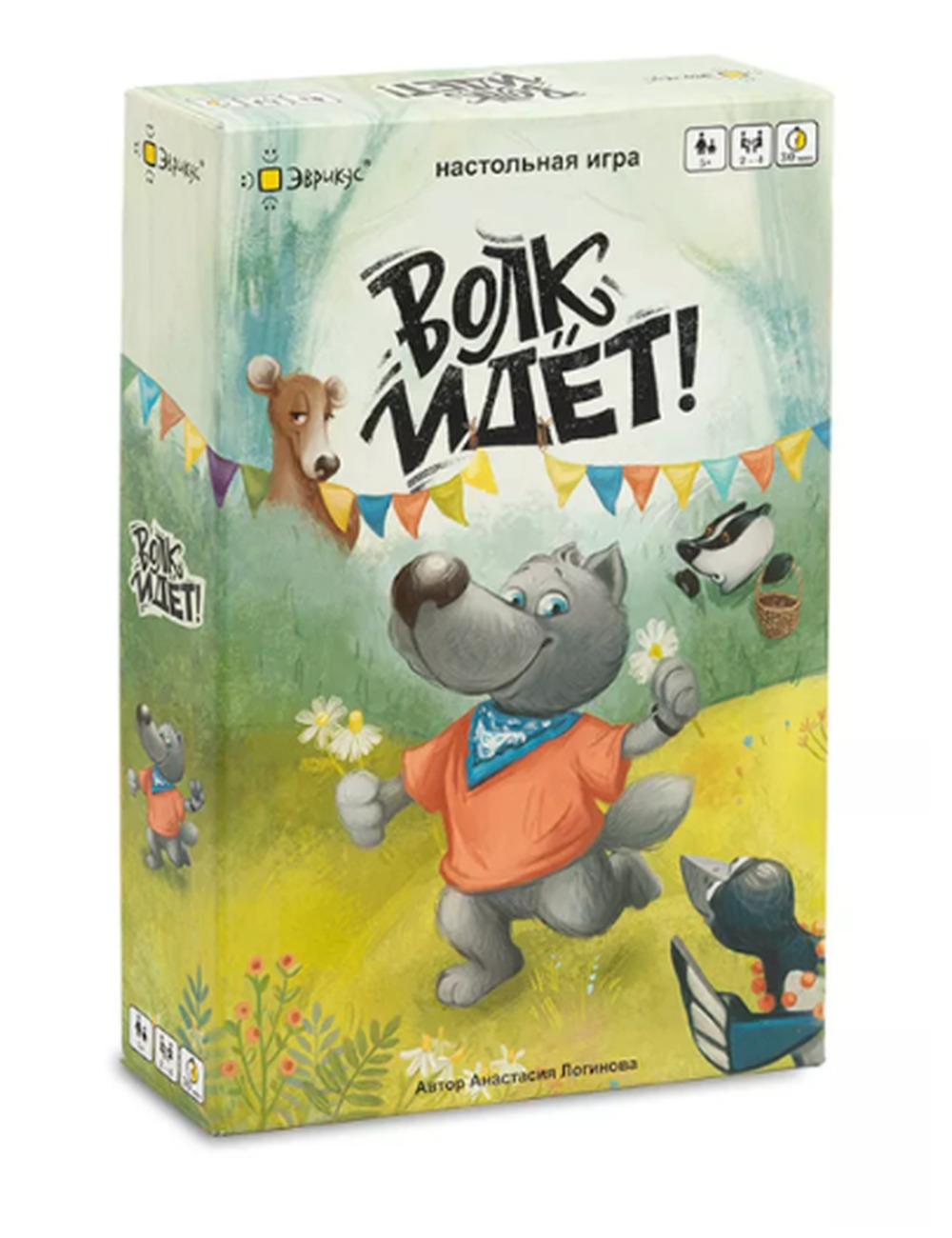 Сегодня день рождения у Волка! Смотрите, он уже идёт по тропинке к своему лесному домику. Белочка, Сорока, Барсучок и Оленёнок хотят порадовать именинника подарками, шариками и тортом со свечками. Однако в пути их могут задержать разные препятствия. Давайте поможем друзьям устроить самый лучший праздник для Волка! **Волк идёт -** это кооперативная игра для всей семьи. Игроки объединены одной целью - подготовить праздник для Волка-именинника. Вам нужно будет перемещать фигурки лесных зверят по игрвому полю и открывать жетоны леса, чтобы найти подарки и угощения. Их необходимо отнести к домику Волка раньше, чем туда дойдёт именинник. **Игра подойдёт** детям и взрослым, которые верят в сказки, для подарка ребёнку, тем, кто любит побеждать в игре вместе с друзьями. **Размер коробки:** 155х235х45 мм. Правила игры; 30 карточек заданий; 5 фигурок животных с подставками; 4 планшета героев; 4 части игрового поля; 30 жетонов леса трёх видов