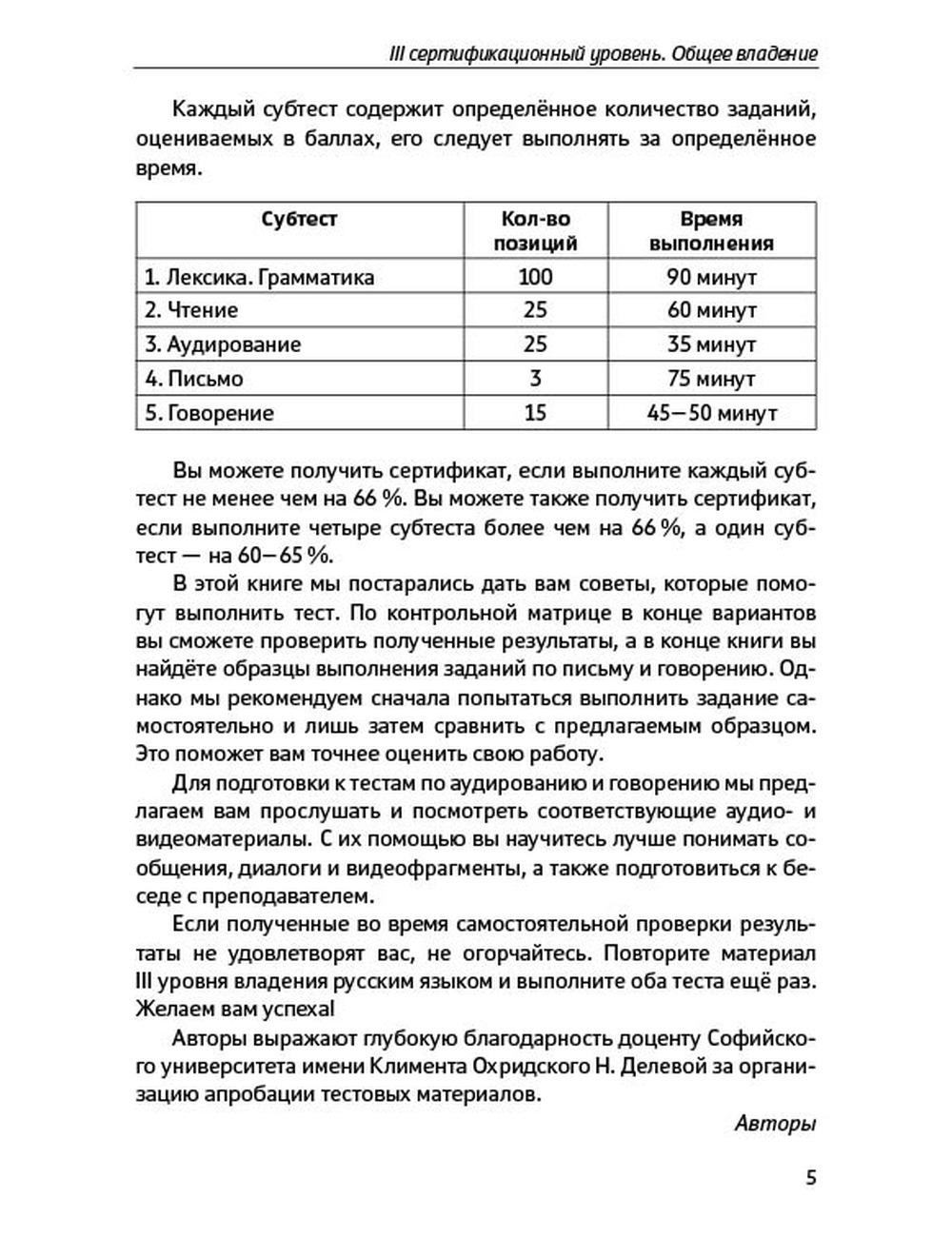 Книга адресуется иностранным гражданам, готовящимся к сдаче теста по русскому языку как иностранному с целью получения сертификата III сертификационного уровня, а также преподавателям, работающим в России и за рубежом.