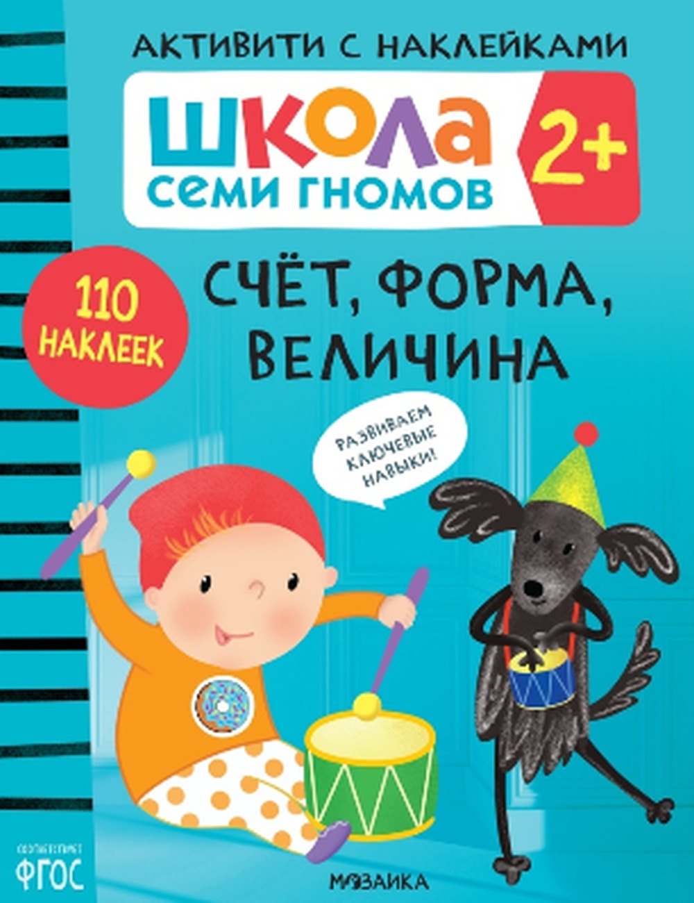 Книга «Счет, форма, величина 2+» из серии «Школа Семи Гномов. Активити с наклейками» предназначена для формирования и развития у детей от 2 до 3 лет элементарных математических представлений, способности измерять величину предметов, определять их форму.