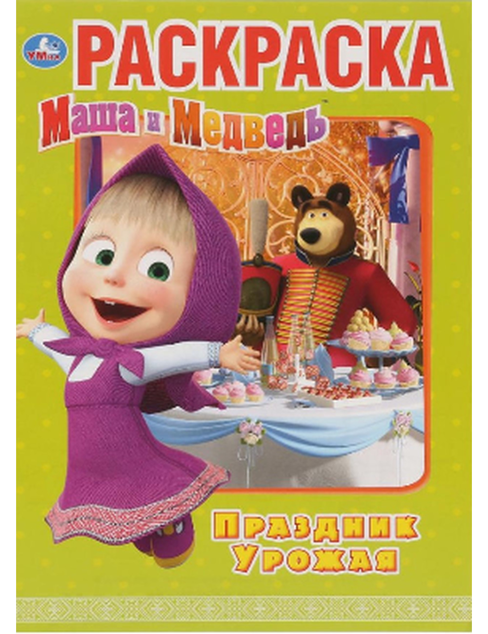 Раскраска Умка Праздник урожая Маша и Медведь (первая раскраска А4) (978 - 5 - 506 - 03186 - 4). Раскрашивая любимых персонажей, ребёнок почувствует себя настоящим художником. Благодаря удобному формату альбом можно взять с собой в дорогу. Книжка - раскраска "Маша и Медведь. Праздник урожая" из серии "Первая раскраска" приглашает детей порисовать: персонажи мультфильма; интересные и разнообразные иллюстрации; короткие рассказы.