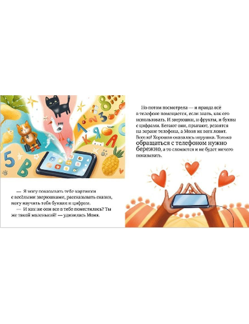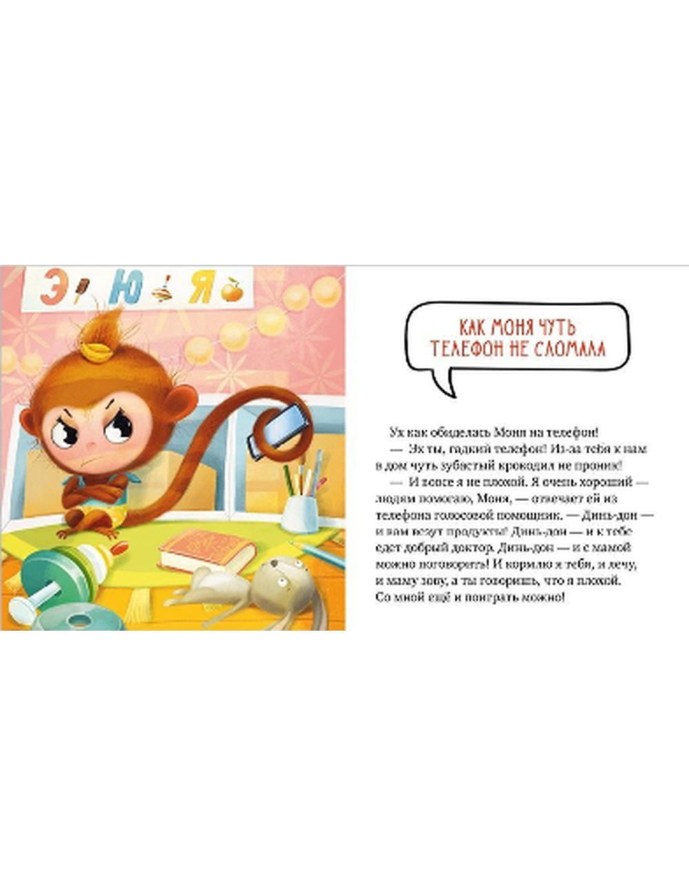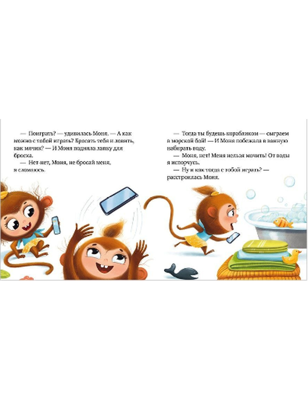 В этой книге малыша ждут три короткие увлекательные сказки, которые помогут ребенку усвоить важные правила обращения с гаджетом. Обаятельная героиня, обезьянка Моня, на своем примере покажет, как надо и не надо себя вести, а правила-помощники и вопросы для размышления помогут закрепить знания. Как и многие дети, обезьянка Моня иногда играет с родительским смартфоном. Но что делать, если звонят с чужого номера, а взрослых рядом нет? Стоит ли разговаривать с незнакомцем, даже если он представляется Дедом Морозом? И как не допустить, чтобы смартфон украл целый день? Книга научит правилам, которые важно знать каждому современному ребенку: не разговаривать с незнакомцами, бережно обращаться с гаджетом и никогда не играть с телефоном целый день.