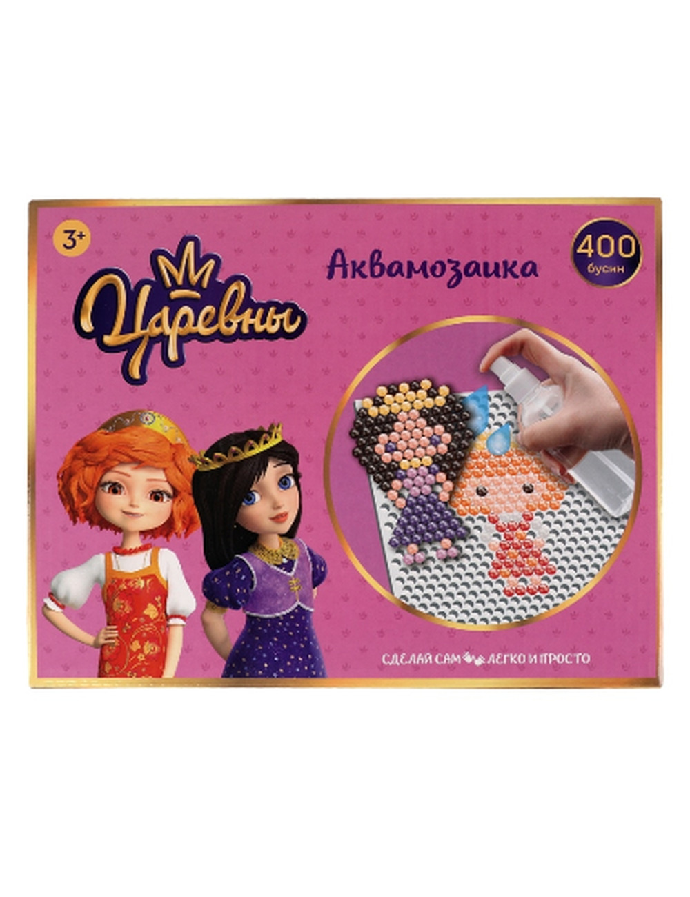 Набор для детского творчества - аквамозаика "Царевны" ТМ "Мульти Арт" - отличный подарок для маленьких поклонников одноимённого мультсериала:- 400 бусин- бусины скрепляются водой (без клея и утюга)- в комплекте всё необходимое: пластиковая основа 10 х 10 см, цветные бусины, карточки-шаблоны, распылитель для воды, пинцет- инструкция на обороте упаковкиСобирая эту мозаику, ребёнок сможет сложить красочные фигурки-картинки в виде персонажей любимого мультфильма и прочих предметов. Чтобы зафиксировать рисунок, бусины необходимо смочить водой, после чего они застынут, и картинку можно будет использовать как фигурку для декора или игрушку.Игровые занятия с аквамозаикой ТМ "Мульти Арт" развивают:- фантазию и воображение- моторику- цветовосприятие- внимание- усидчивостьРазмер упаковки: 6 х 22 х 18 см. Материал: пластмасса.Рекомендовано детям от 3-х лет.