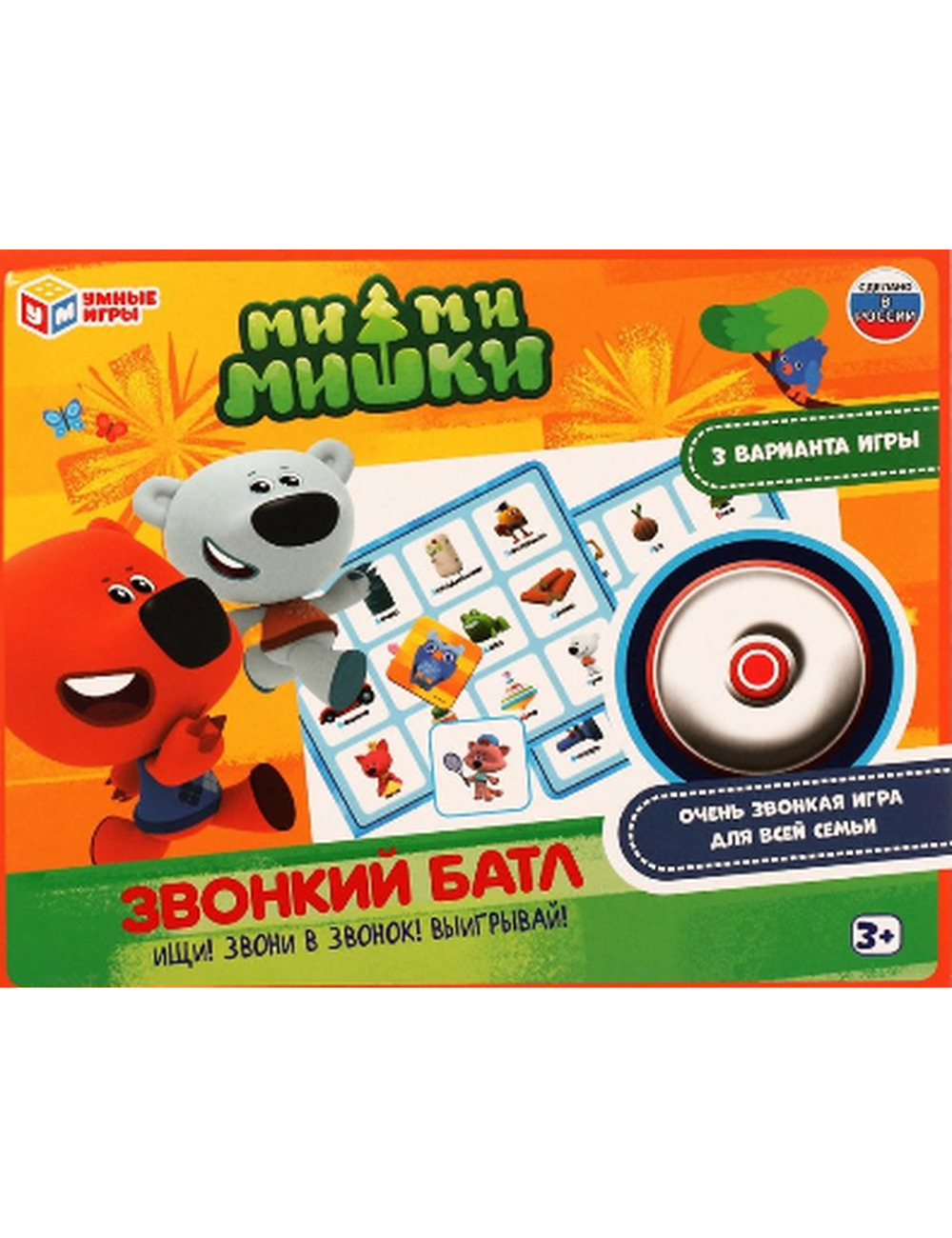 Настольная игра со звонком "Ми-ми-мишки. Звонкий батл" ТМ "Умные игры" - весёлая и очень звонкая игра для всей семьи!Особенности:- 3 варианта игры- красочный дизайн с любимыми персонажами- количество игроков: от 2-х человек- продолжительность игры: от 15 минут, Состав игры: - звонок- правила игры- 3 карточки-основы- 81 фишка. ИГРА "НАЙДИ КАРТИНКУ"2+ игрока, 15 минут. ИГРА "БУКВОПУТАНИЦА"2+ игрока, 15 минут. ИГРА "ЛОТО"2-3 игрока, 15 минут.