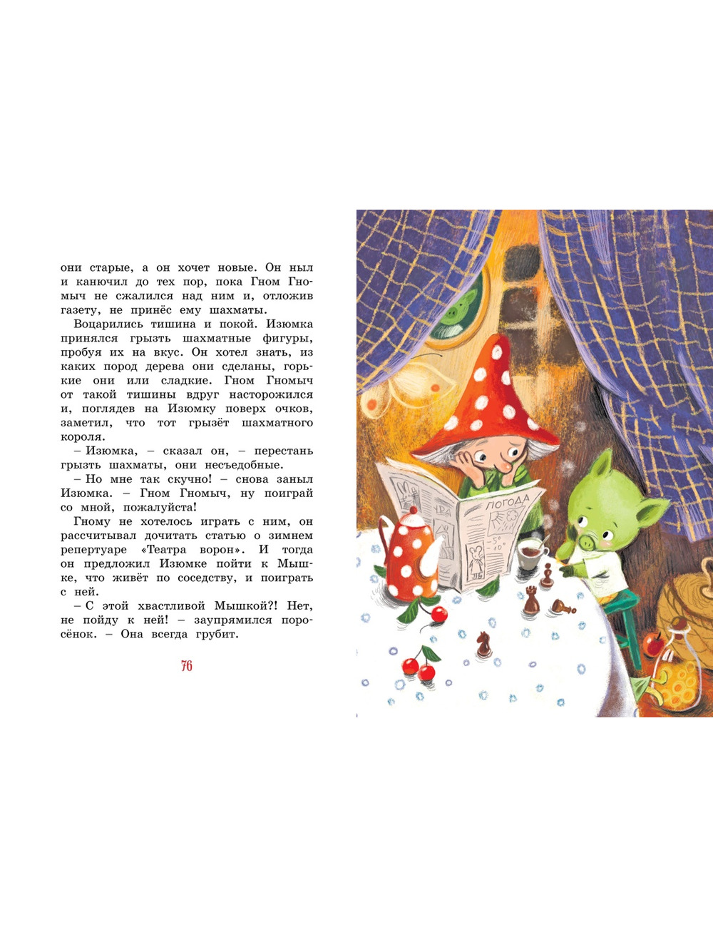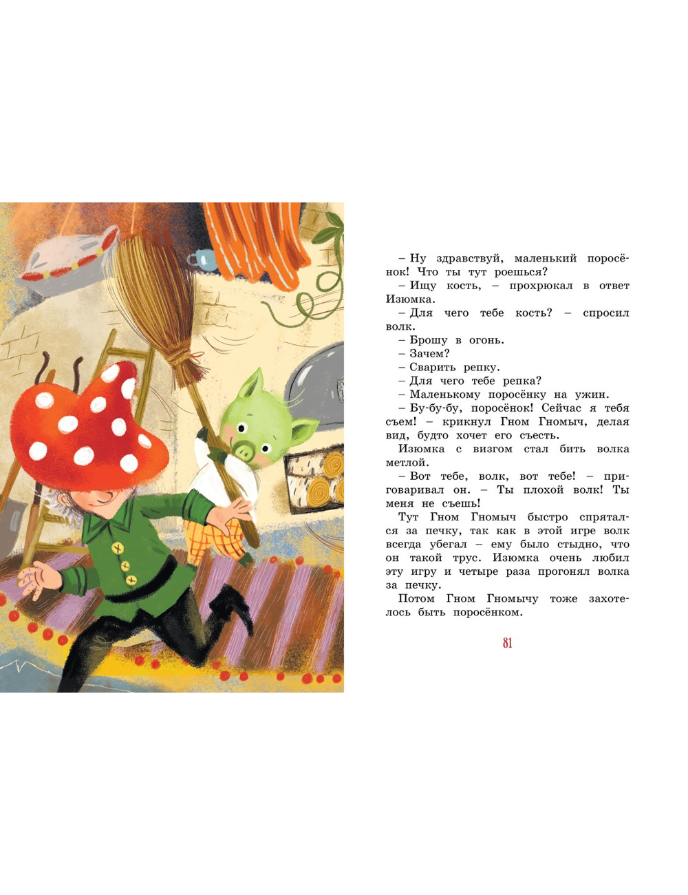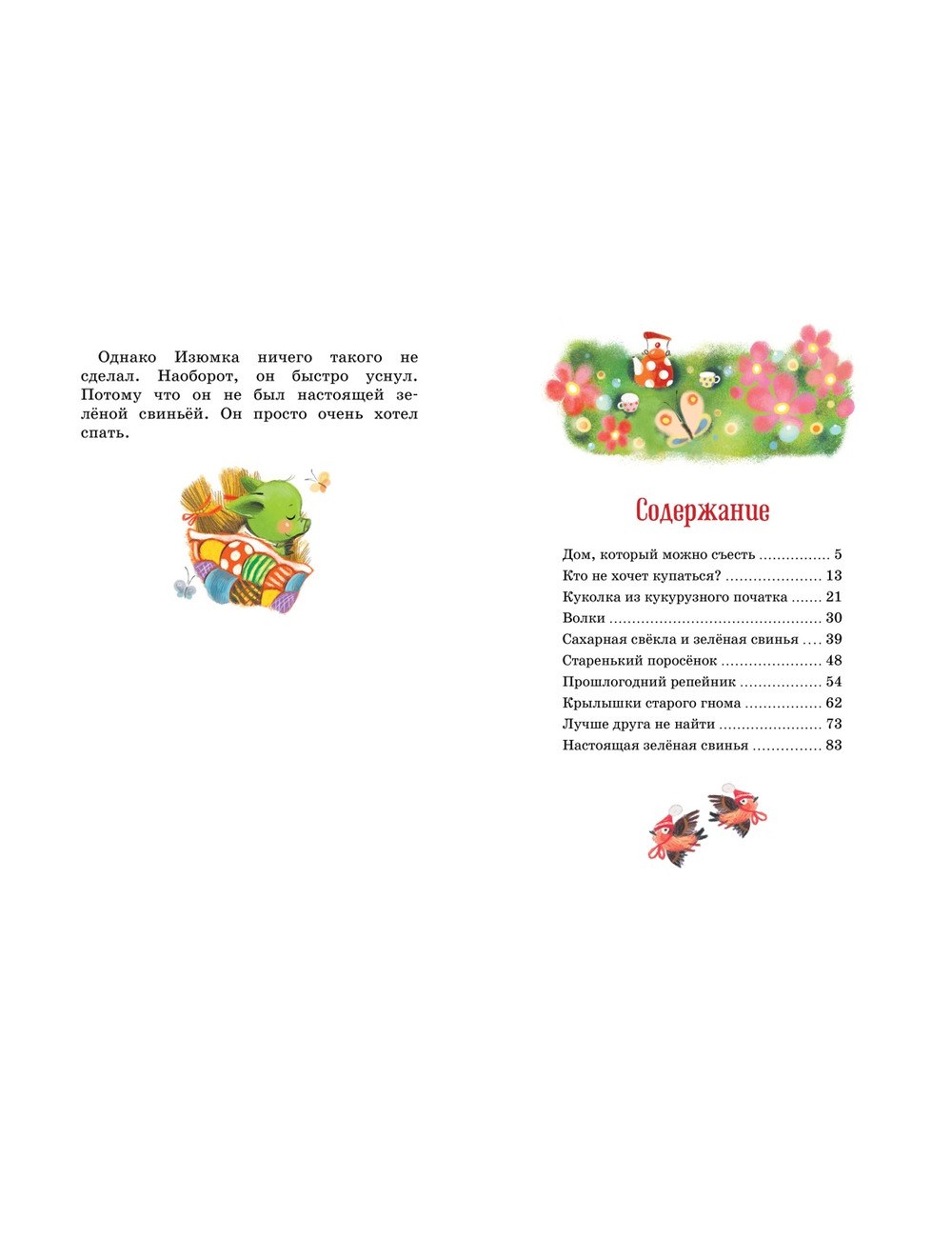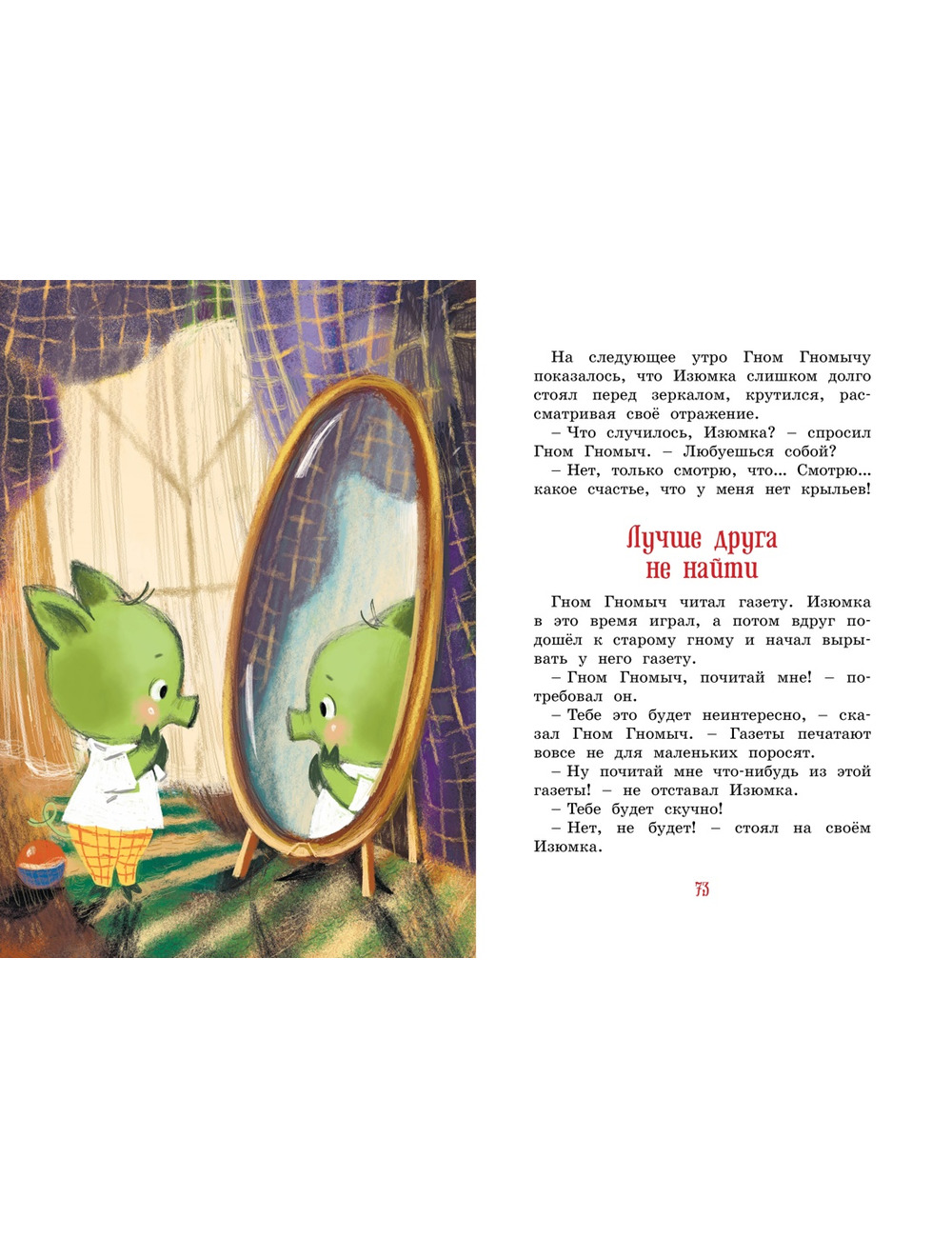 Зелёного поросёнка Изюмку и его друга Гном Гномыча, которые жили в домике из тыквы, придумала венгерская писательница Агнеш Балинт. Впервые эти герои появились в детской телепередаче и так полюбились малышам, что Агнеш Балинт сочинила про них целых три книжки. Книжки перевели на многие языки, и дети разных стран тоже познакомились с мудрым Гном Гномычем и упрямым непоседой Изюмкой. Десять самых первых сказок – весёлых, добрых и весьма поучительных – вы прочитаете в этом сборнике.