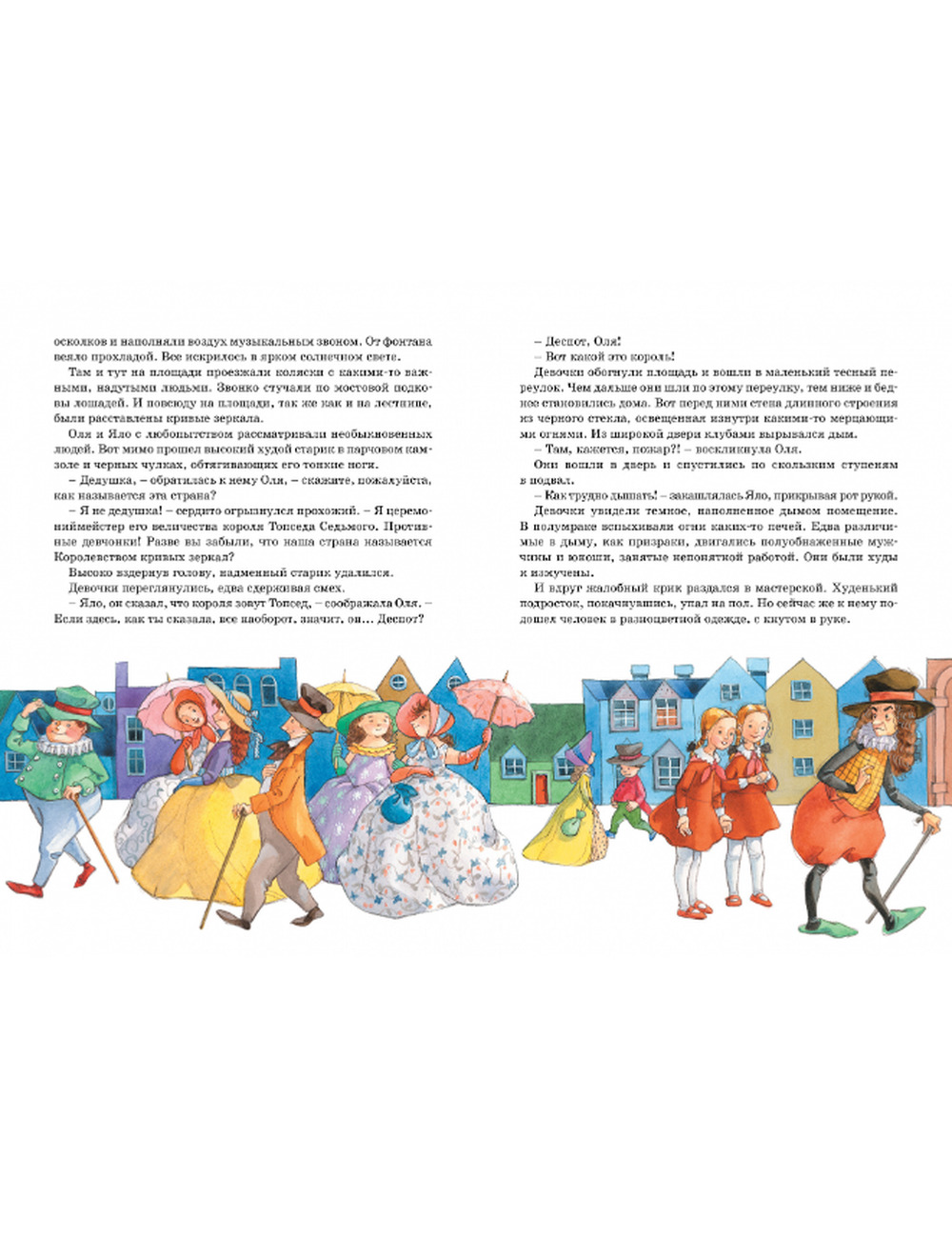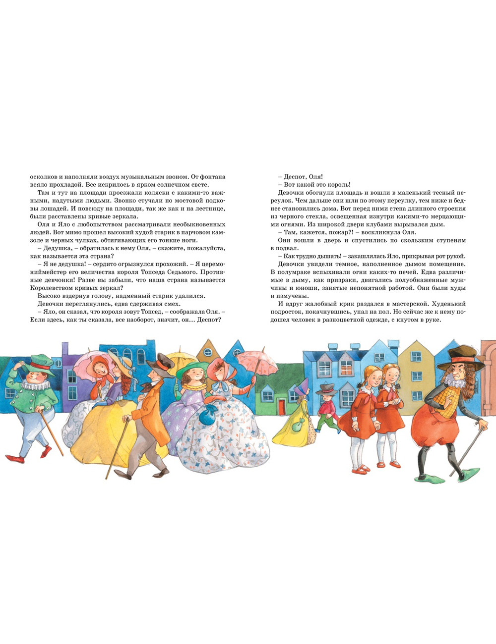 Добрая, умная и необычайно увлекательная сказочная повесть Виталия Губарева «Королевство кривых зеркал» – одна из самых любимых детских книг в нашей стране, давно ставшая классикой. В ней пятиклассница Оля волшебным образом попадает в зазеркалье, где всё наоборот. Чтобы вернуться домой, ей придется пройти множество испытаний. И это не просто испытания – это проверка на характер и умение дружить. Прочитав эту книгу, каждый поймет: чтобы узнать, кто ты есть на самом деле, стоит посмотреть на себя со стороны.