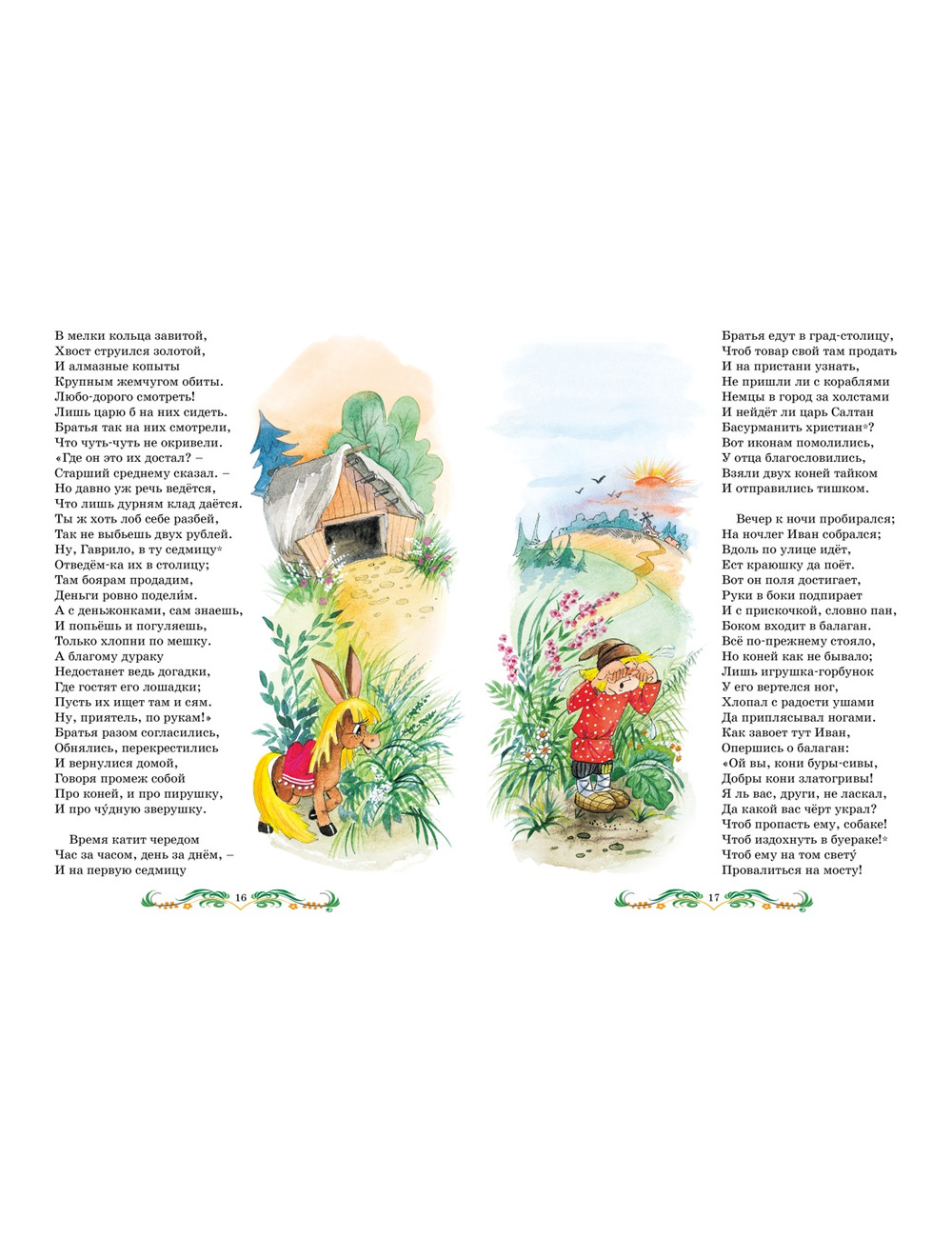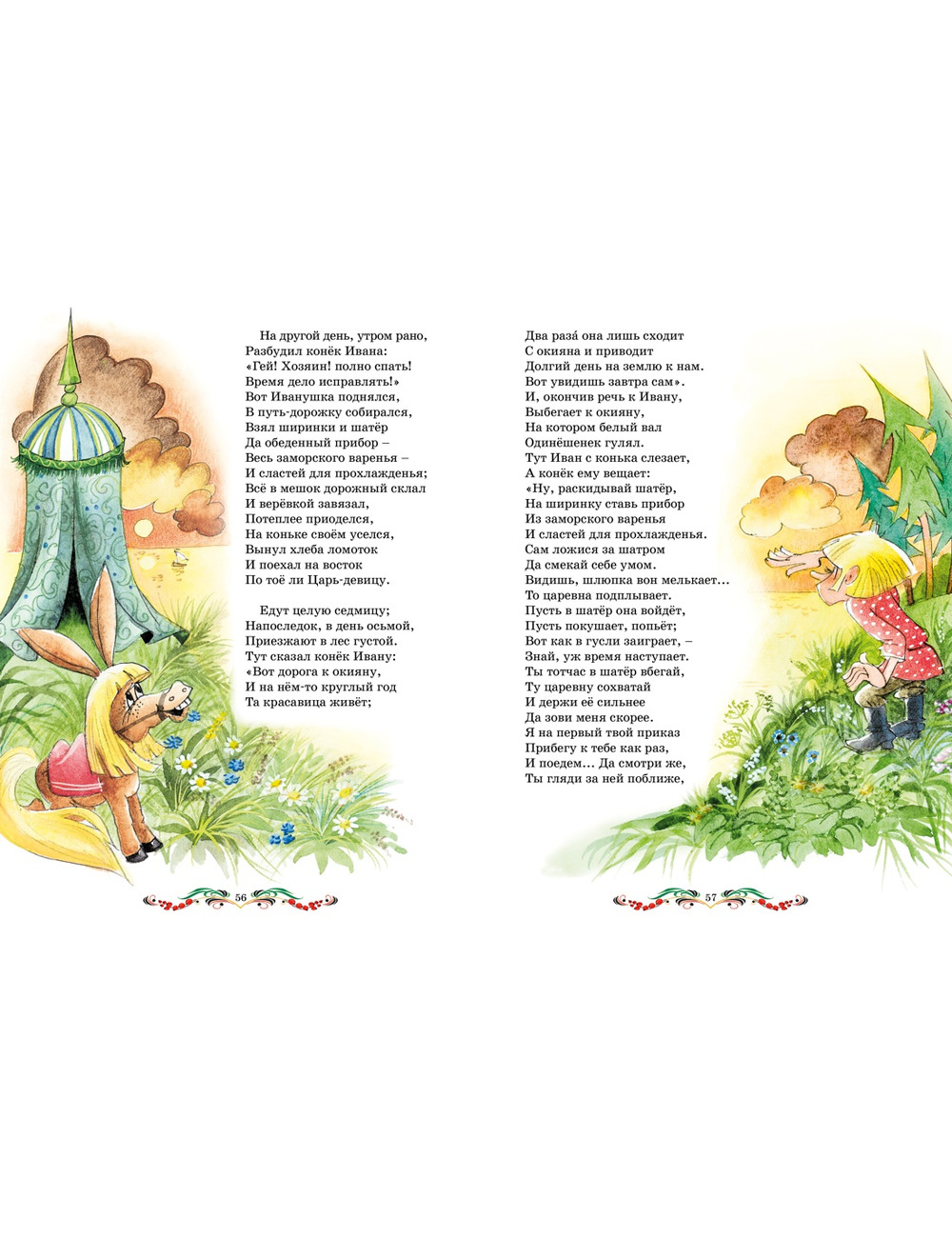 Знаменитая сказка П.П. Ершова (1815–1869) «Конёк-горбунок», которую каждый из нас помнит с раннего детства, была напечатана в 1834 году и с тех пор стала классикой русской литературы. Впитав в себя мотивы старинных народных сказок, она высмеивает царя, глупых бояр, купцов и других притеснителей народа. Иванушка с помощью волшебного конька-горбунка побеждает всех своих врагов, потому что на его стороне правда, добро и справедливость.