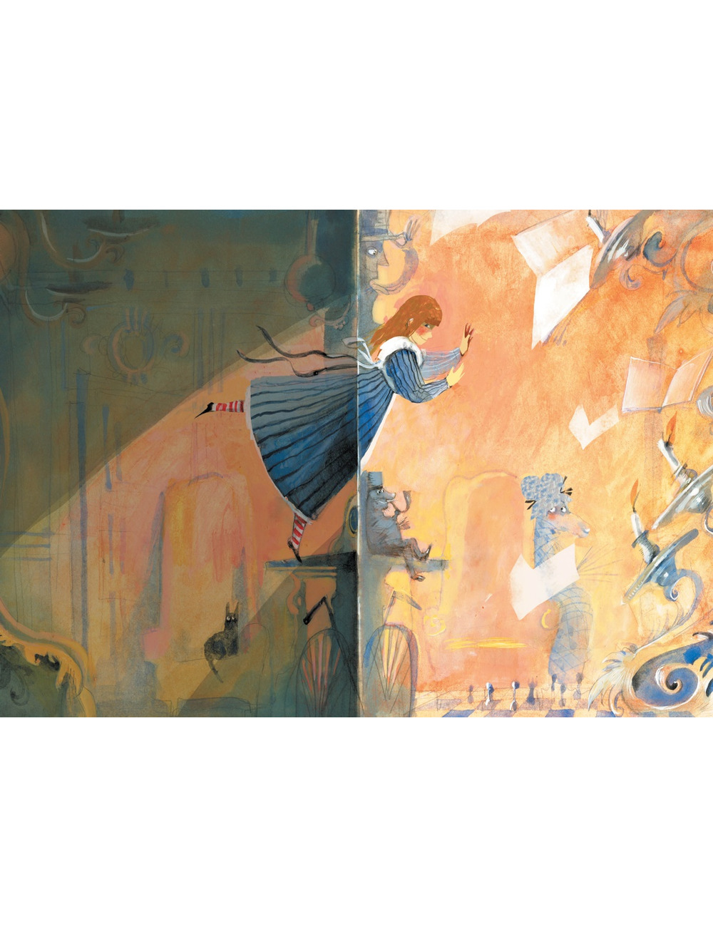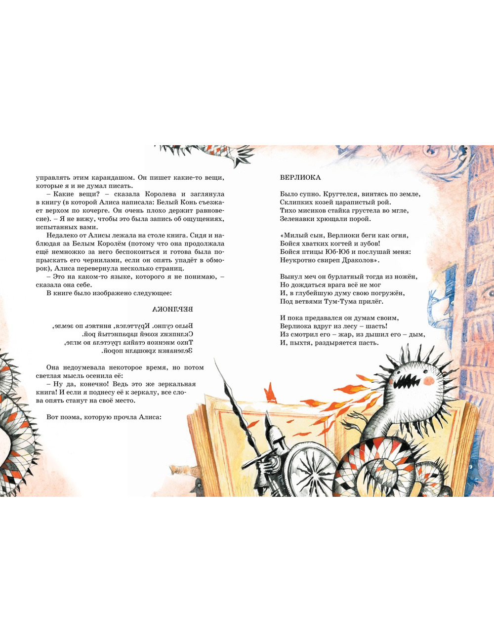 Героиня этой сказочной повести Алиса проходит сквозь зеркало и оказывается в мире, который представляет собой огромную шахматную доску. Там она становится белой пешкой. Много фантастических приключений переживёт Алиса, прежде чем преодолеет все препятствия и доберётся до нужной клетки, где по правилам шахматной игры превратится в королеву. Вот только все эти необыкновенные происшествия – красочный сон Алисы и чудесная выдумка автора этой книги англичанина Доджсона, чьи серьёзные занятия математикой и духовный сан не вязались с сочинением шутливых детских стихов со множеством парадоксов и небылиц. Скрываясь под псевдонимом Льюис Кэрролл, он тем не менее создал одну из самых причудливых сказок в мире, которой зачитываются и взрослые и дети.