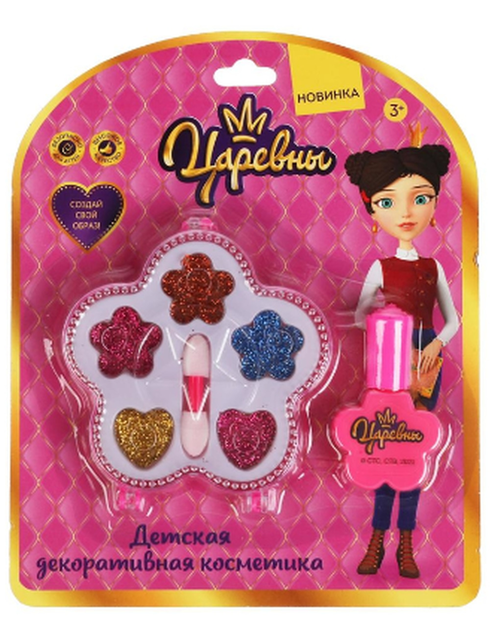 Набор косметики для девочек Царевны. Дарья ТМ Милая леди непременно понравится маленькой моднице: тени для век с блёстками 5-ти цветов: розовый, оранжевый, синий, малиновый, золотистый, лак для ногтей розового цвета, двусторонний аппликатор для нанесения макияжа, складной футляр - безопасно для детей, высокое качество. Девочки в любом возрасте хотят быть красивыми. Специально для юных модниц был разработан этот набор, состоящий из сверкающих теней для век в красивом футляре и лака для ногтей. Маленькая принцесса обязательно оценит красочные цвета, волшебный блеск и модную упаковку с любимой героиней. Развивайте чувство стиля и вкуса, учите девочку создавать свой неповторимый образ вместе с косметикой ТМ Милая леди . Размер упаковки: 2 х 16 х 19 см. Материал косметики: полимер. Материал аксессуаров: пластик. Материал упаковки: пластик + картон. Цвета и оттенки могут варьироваться в зависимости от наполнения набора. Рекомендовано детям от 3-х лет.