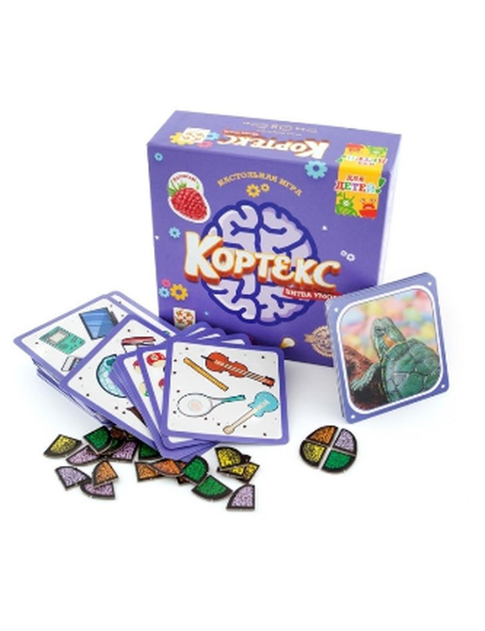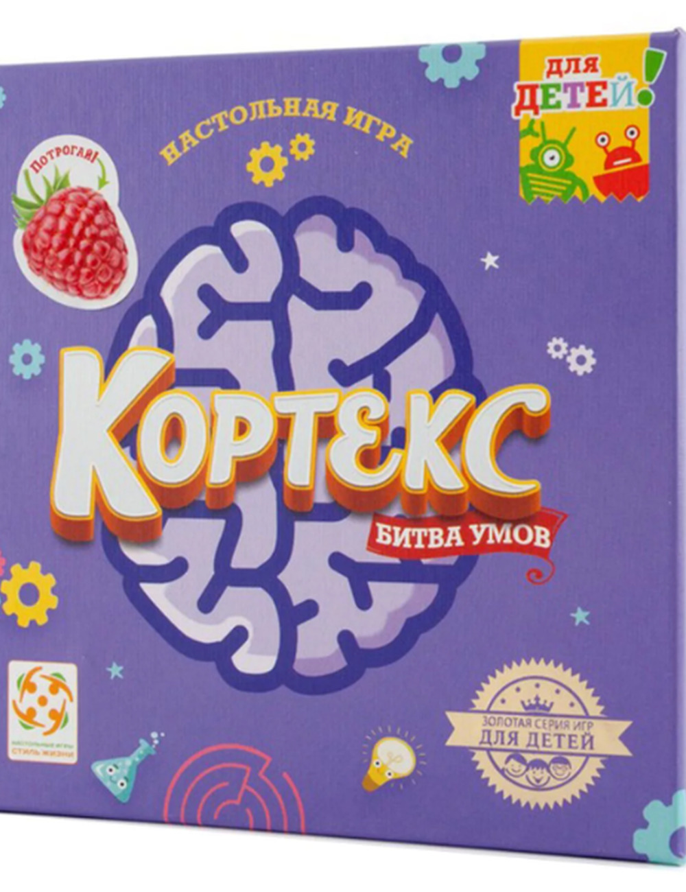 Примите участие в настоящей Битве Умов, и пусть победит умнейший! Детская версия настольной игры Кортекс содержит тактильные карты. Детская версия игры "Кортекс. Битва умов"– это 8 типов карт-заданий, которые тренируют память, внимательность, скорость реакции и мышления, навыки устного счёта, координацию, а также сенсорное восприятие с помощью специальных тактильных карт. Не зевайте, а то победа достанется другому игроку! Настольная игра Кортекс: Битва умов для детей приглашает вас повеселиться с друзьями и показать свою сообразительность! Вас ждут задания восьми разных типов, развивающие память, логику, внимательность, скорость реакции и мышления, навыки устного счёта, координацию, а также сенсорное восприятие. В настольной игре Кортекс для детей вам предстоят разнообразные испытания. Найдите лишнюю картинку, помогите коту догнать мышь и не заблудиться в лабиринте, подберите недостающий кусочек пазла. За каждое успешно выполненное задание вы будете получать карту, а за две карты одного типа – победные фишки. Собравший по одной фишке всех четырёх цветов объявляется победителем Битвы умов! Сумеете отличить змеиную шкуру от панциря черепахи на ощупь? А след босой ноги от следа ботинка? Специальные тактильные карты настольной игры Кортекс для детей игроки могут рассмотреть и пощупать перед началом партии, а во время игры у отгадывающего есть лишь десять секунд, чтобы понять, какую из них он держит в руках. Испытания этого типа сразу приносят в награду одну из фишек. Несмотря на указанный возраст от 6 лет, детские нейропсихологи рекомендуют начинать знакомство с игрой Кортекс для детей с более раннего возраста, вплоть до 3+. Игра будет способствовать ускорению развития ребенка и улучшению таких видов мышления, как скорость реакции, внимание и логические связи. Если вам понравилась настольная игра Кортекс для детей, обратите внимание на продолжение - "Кортекс 2 для детей. Битва умов", а также на чуть более сложные версии: "Кортекс. Битва умов" (8+) и "Кортекс 2. Битва умов" (8+).