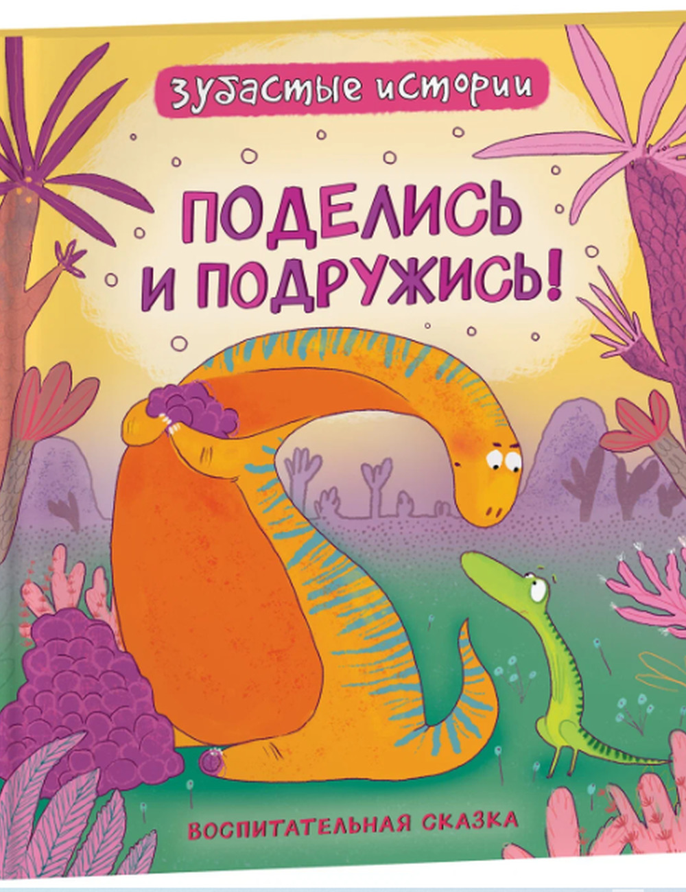 «Зубастые истории» — это интересные сказки с воспитательным эффектом о приключениях маленьких динозавров. Книга «Поделись и подружись!» также поможет малышу понять, как нехорошо жадничать и как легко заводить друзей, когда ты щедрый.