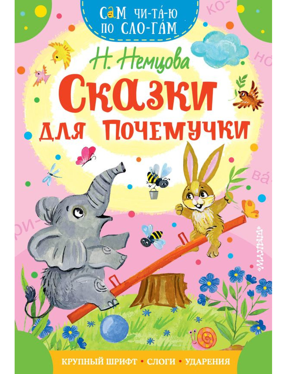 Ваш малыш уже знает буквы и его ручки тянутся к книжкам? Покажите ему серию «Сам читаю по слогам». Это книжки небольшого формата, с большими буквами, и все слова разбиты на слоги с ударениями. В этой серии собраны лучшие произведения классиков детской литературы — С. Маршака, С. Михалкова, Э. Успенского, Г. Остера, В. Сутеева и других знаменитых писателей и поэтов. Каждую книгу маленькие мальчики и девочки смогут прочитать САМИ от начала и до конца. А потом будут гордо говорить: «Вот мои первые прочитанные книжки. Хочу читать ещё!» В познавательных сказках Наталии Немцовой, кандидата педагогических наук, сценариста радио и телевидения, малыши получат простые и запоминающиеся ответы на вопросы: почему идёт дождь? зачем киту фонтан? что такое северное сияние?