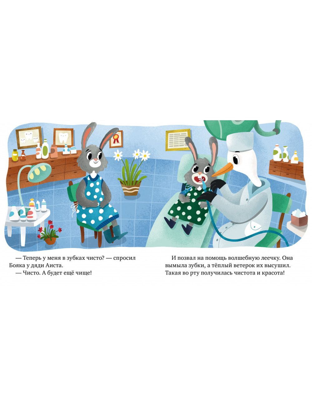 Как-то раз у Зайки Бояки, ушастого трусишки и паникера, разболелись зубки. Но он никак не хотел идти к стоматологу — уж очень ему было страшно. А вдруг доктор что-то сделает с его зубками?!