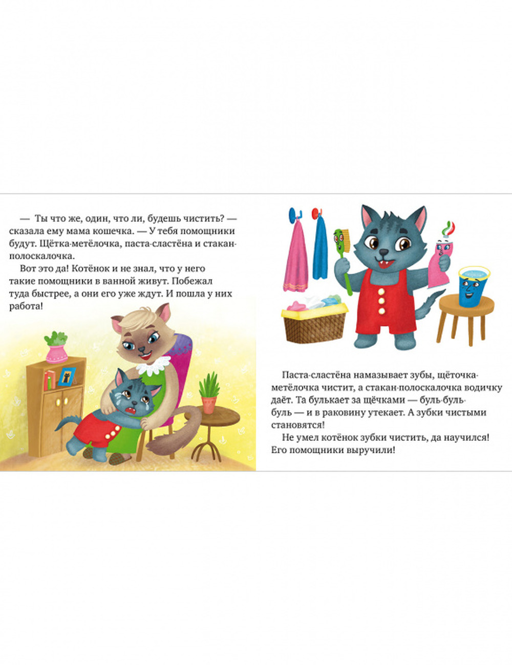 Книга «Малыши чистят зубы» — содержит 3 короткие истории про озорных и веселых зверят. Вместе с героями книги малыш решает какие-то важные для него задачу — он учится чистить зубки утром, после еды и перед сном. Герои на своем примере показывают ему, почему это важно делать и как превратить рутинные, казалось бы, на первый взгляд, скучные занятия по чистке зубов в повседневное веселье. С одной стороны, это простые истории, с другой — терапевтические сказки, которые дадут малышу полезный навык на всю жизнь.