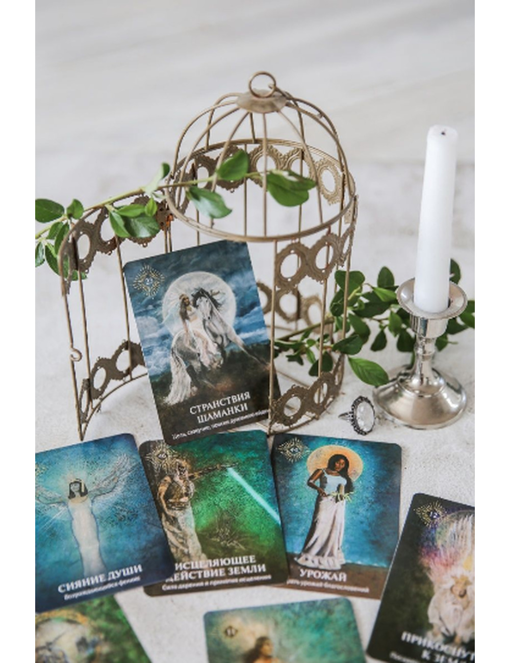Этот набор из 53 карт является совместной работой двух потрясающих целительниц и духовных наставниц. Сандра Энн Тейлор раскрывает присутствие в нашей жизни универсальной энергии посредством потрясающих изображений живых существ творений духовного мира, Божественных женских архетипов и таинственных геометрических форм. А известная художница Кимберли Веббер словно переводит Божественную энергию на материальный язык с помощью замысловатых рисунков в стиле современного магического реализма, который берет свои корни в древнем мире как она сама его определяет, используя в своих работах уникальную технику добавления к обычным красителям редких камней-самоцветов, кристаллов и драгоценных металлов. Представленные на картах образы и послания можно применять не только для получения предсказаний, но и в качестве инструмента для изменения своего внутреннего мира и его внешних проявлений в вашей жизни и окружающей реальности.