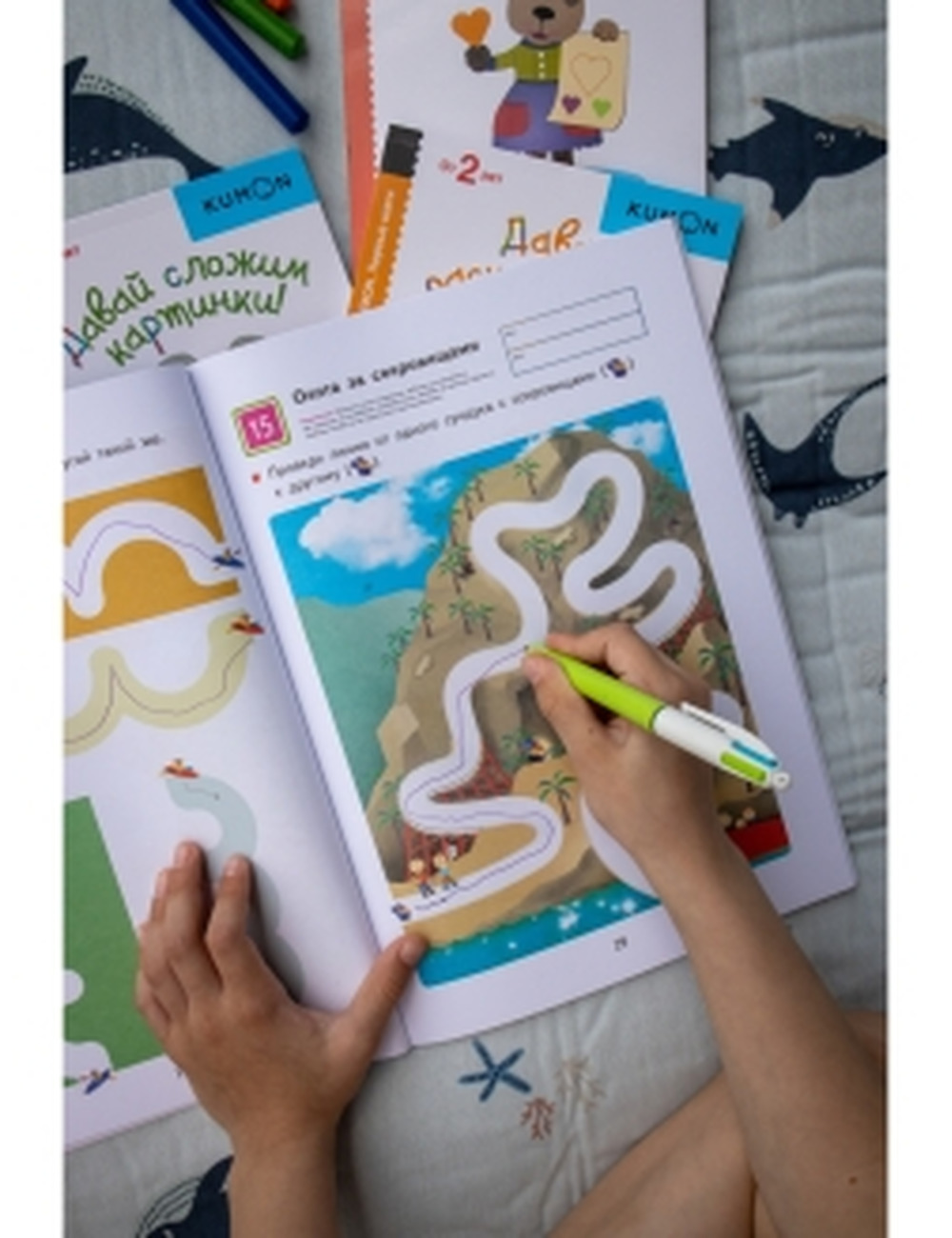 Одна из самых популярных тетрадей KUMON - своего рода первые прописи. Научит ребенка правильно держать карандаш, проводить простые линии и заодно подготовит руку к письму. Каждое задание в этом пособии от издательства МИФ - небольшая веселая игра, которая вызовет интерес у малыша, и он будет с удовольствием заниматься. Упражнения в этой детской развивающей книжке КУМОН даны по принципу от простого к сложному: сначала ребенок проводит произвольные линии, затем - петли, зигзаги и окружности. Такое пособие можно использовать как дополнение или замену другим тетрадям, например, из серий "Умница" или "Школа 7 гномов". Хороший вариант развивашки для детей от 2 лет.