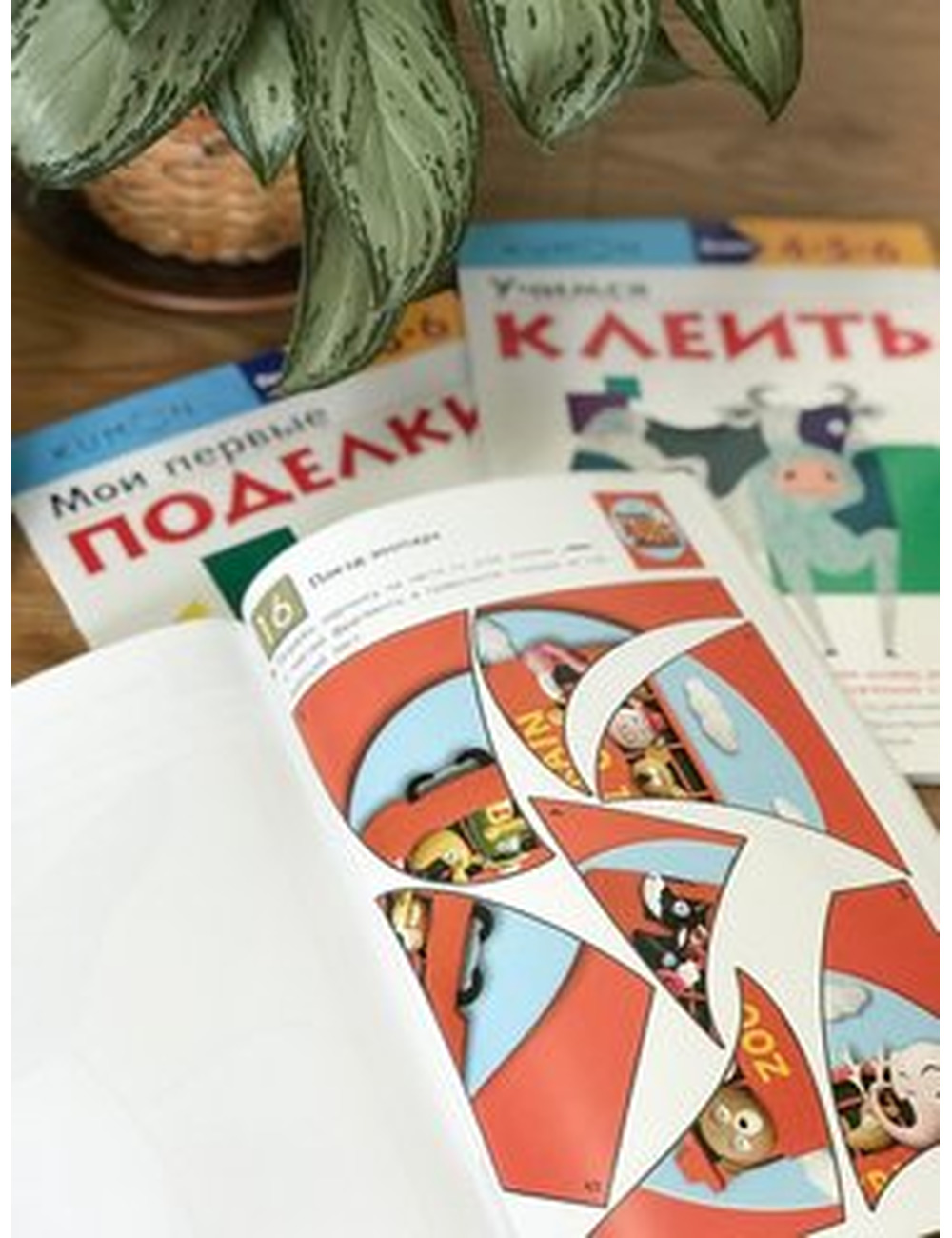 В этой рабочей тетради ребёнку предлагается вырезать детали пазла из одной страницы и собрать их на второй в правильном порядке, а потом приклеить, создав аппликацию. Тренируются мелкая моторика, внимание, логическое и пространственное мышление, даются навыки работы с клеем и ножницами.