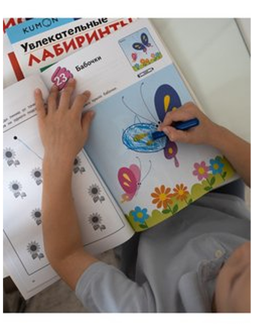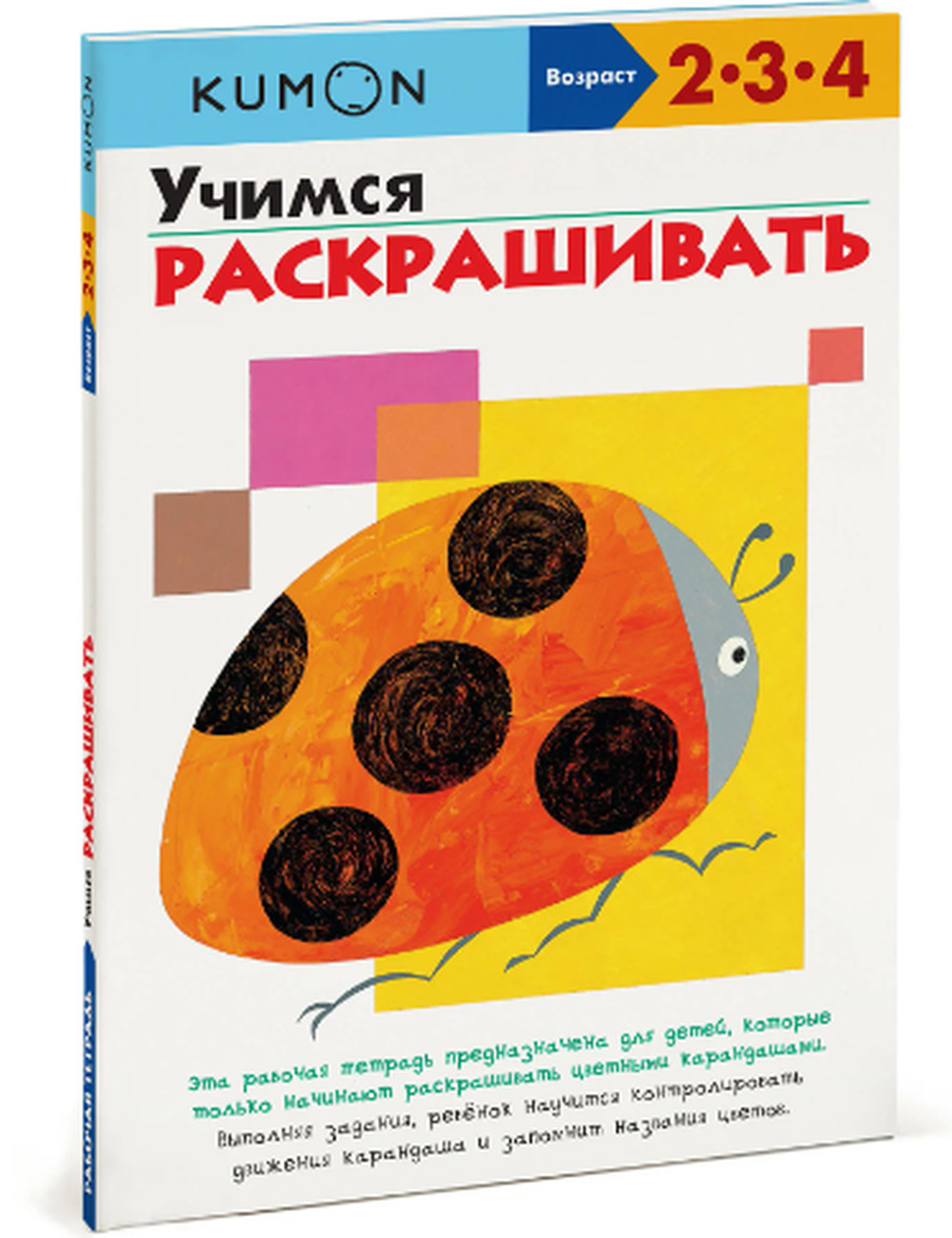 Рабочая тетрадь KUMON из классической "Белой серии" предназначена для детей, которые только начинают раскрашивать цветными карандашами. В этой развивающей книжке специально подобраны картинки со знакомыми детям растениями и животными, чтобы ребенку было интересно их раскрашивать. Цвета предметов соответствуют реальности, например, вишни на рисунках красные, а бананы - желтые. Выполняя развивающие задания в тетради КУМОН от издательства МИФ, ребенок будет изучать цвета и учиться контролировать движения карандаша, и тем самым готовить руку к письму. На оборотной стороне каждого листа малышу предстоит проводить линии, не задевая картинок. Задания в тетради строятся от простого к сложному, чтобы заниматься по ним, достаточно всего 15-20 минут в день. Это хороший вариант развивашки для детей в возрасте 2 года и старше, дополнение или альтернатива пособиям "Я могу" и "Школа 7 гномов".