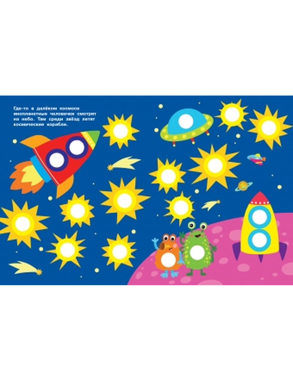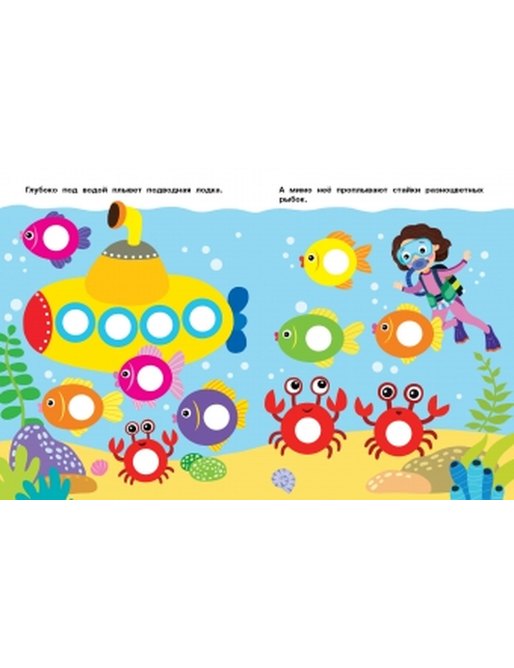 Приклеивая на картинки в этой книге яркие разноцветные многоразовые наклейки-кружочки, ваш малыш сможет повторять названия цветов и предметов, развивать мелкую моторику и усидчивость.