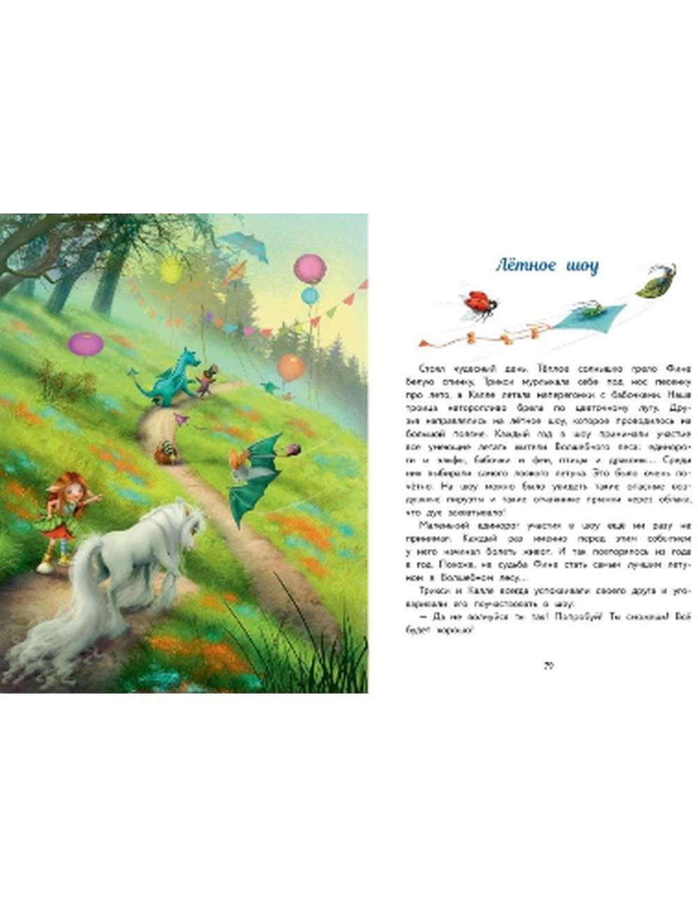 Волшебные приключения маленького единорога Фини и его друзей Трикси и Калле продолжаются! Хотите узнать, что за жуткие звуки слышны ночью на поляне? Куда пропала книга заклинаний ведьмы Вальтрудии? Зачем в Волшебном лесу объявился огромный грифон? Почему поссорились Финя и Трикси? Кто победил на Лётном шоу?.. В этой книге вас ждут двенадцать новых историй!