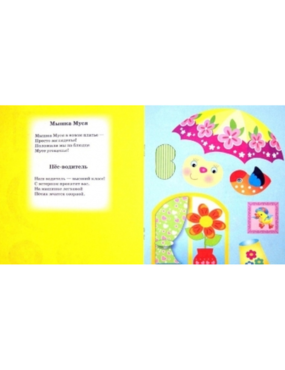 Яркая творческая серия для малышей содержит детали разных размеров и форм. С помощью взрослых и благодаря подсказкам ребенок учится вырезать, приклеивать и размещать детали, составляя рисунок.