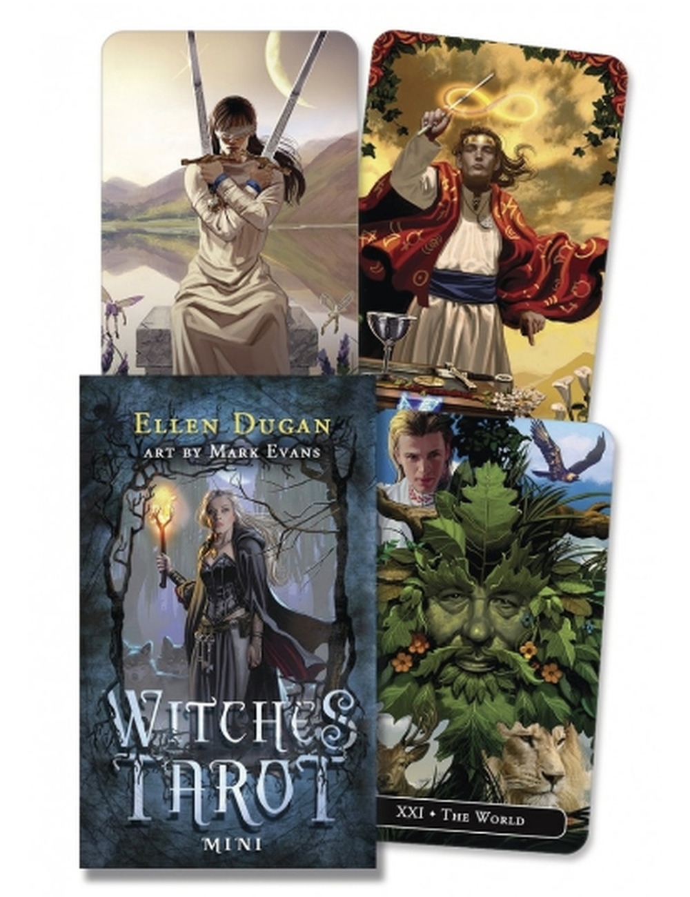 Состав колоды: Полная колода; Количество карт: 78; Бренд: Llewellyn; Автор колоды: Ellen Dugan Mark Evans, Эллен Дуган и Марк Эванс; Издатель: Llewellyn; Оригинальное название: Witches Tarot (Ellen Dugan); Русскоязычное название: Набор Карты Таро Ведьм Эллен Дуган; Художник: Mark Evans, Марк Эванс; Язык колоды: Английский; Русскоязычная инструкция: No; Размер карты, см (ВхШ): 7 x 12.7; Младшие арканы: Сюжетные иллюстрации; Год выпуска: 2012; Формат карт: Большой формат; Состав набора Таро: 78 карт + книга на английском языке; Страна-изготовитель: США; Традиция Таро: Английская школа (Артур Уэйт); Размер: 140 x 210 x 50 мм; Вес: 750 g; Тематика: Ведьмы, Любовь, Мифология, Астрология и знаки зодиака; Название модели: Набор Карты Таро Ведьм Эллен Дуган; Целевая аудитория: Взрослая;