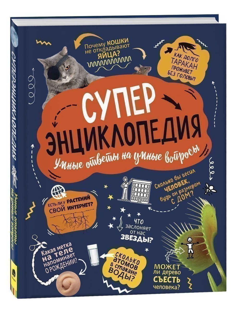 Наглядная современная энциклопедия ответов на самые популярные вопросы об окружающем мире. На простых примерах она объясняет многие природные явления и научные понятия из физики, химии, биологии, зоологии и анатомии. Каждая глава начинается с наивных на первый взгляд вопросов: может ли дерево съесть человека, зачем нам пупок, как кактусы выживают без воды?Прочитав "Суперэнциклопедию", подросток узнает: как человек различает цвета; почему яйца твердеют при нагревании; как хамелеоны меняют цвет; всегда ли кровь красного цвета; что такое сила, звук, свет, электричество, вещество и не только.Стильное оформление - современные фотографии в сочетании с ироничным рисованием - наглядно иллюстрирует объяснения ученых. Данное издание - яркий пример того, что обучение детей и развитие их эрудиции может быть очень увлекательным!Книга станет чудесным подарком и полезным дополнением к школьной программе, поможет развить интерес к научно-познавательной литературе и изучению окружающего мира.
