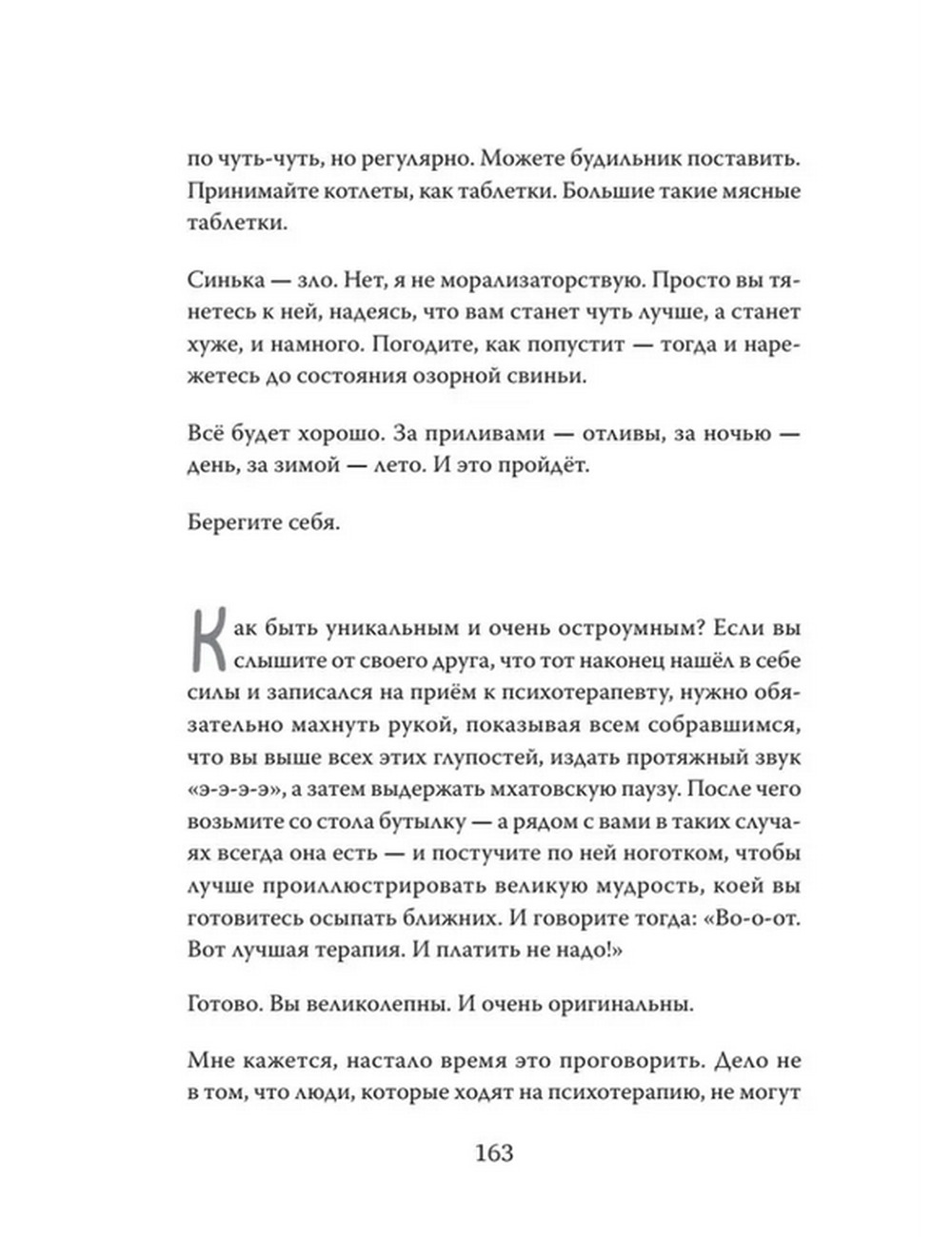 Мир изменился до неузнаваемости у нас на глазах. У кого-то прогорел бизнес, у кого-то погибли родственники, кто-то был вынужден уехать в неизвестность. Помимо всего этого никто не отменял «обычной» жизни с её проблемами и потрясениями. В общем, ребята, нам досталось. И все мы вывозим, как можем. За эти несколько лет барахтанья во всех возможных штормах я определила для себя несколько базисных вещей, на которые можно опереться, называю их китами. В этой книге я размышляю над тем, как выращивать своих китов и заботиться о них, чтобы они могли позаботиться о вас. И тогда у вас всегда будет опора под ногами, через какие бури не пришлось бы проходить.
