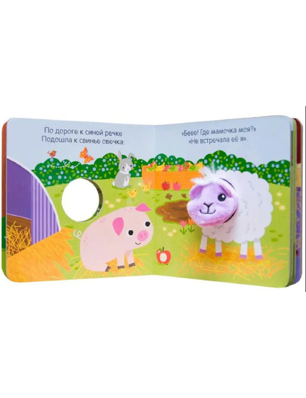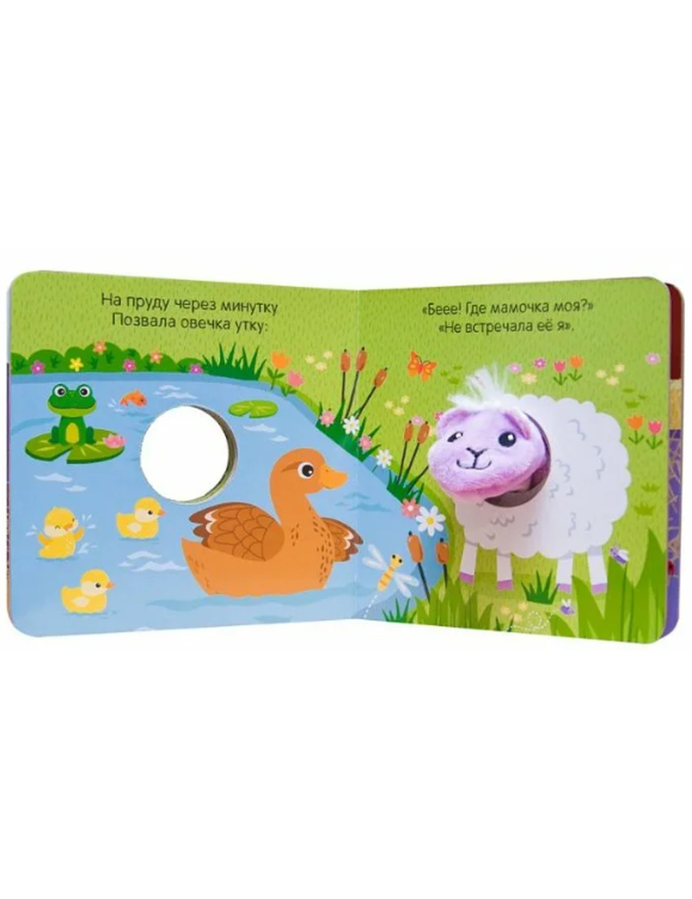 Знакомьтесь: пушистая овечка! Забавная книга с пальчиковой куклой обязательно станет любимой. Ваш малыш сможет не только познакомиться, но и поиграть с очаровательной овечкой: детям очень нравится, когда овечка прячет, а потом снова высовывает голову и трется мордочкой о детскую ладошку. Веселые стихи расскажут о приключениях пушистой овечки. Читая их и показывая картинки, Вы сможете инсценировать происходящее и от имени героя общаться с ребенком. Такая игра способствует развитию фантазии и воображения. Книжка с закругленными краями на плотном картоне абсолютно безопасна и будет долго радовать маленького читателя.