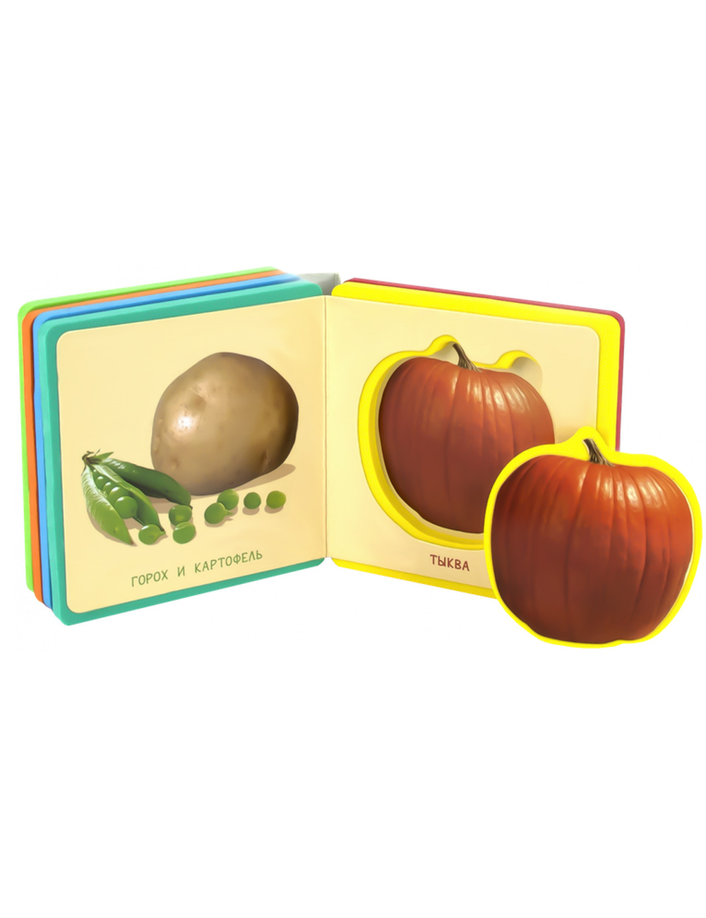 На каждом книжном развороте мини-энциклопедии внимание Вашего ребёнка привлекут напечатанные на качественной мелованной бумаге реалистичные фотоизображения овощей, а мягкие фигурные вкладыши-пазлы станут элементом игры и доставят ему много радости.