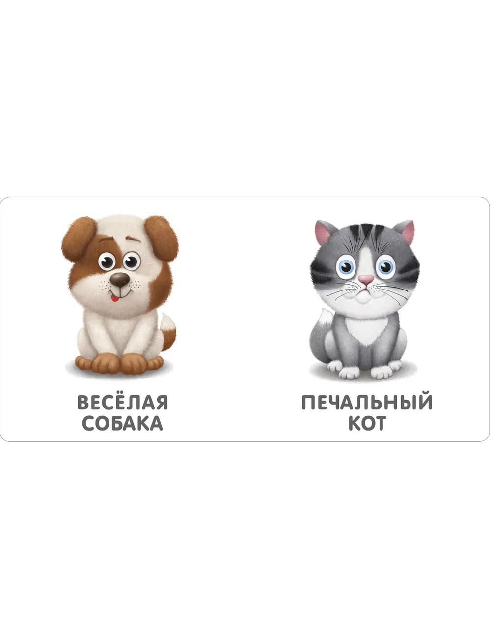Эта книжка - настоящая находка для любознательного малыша. На каждой ее страничке - яркие картинки с изображениями популярных животных, которые переживают разные эмоции, а также подписи к ним.