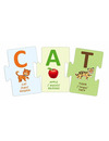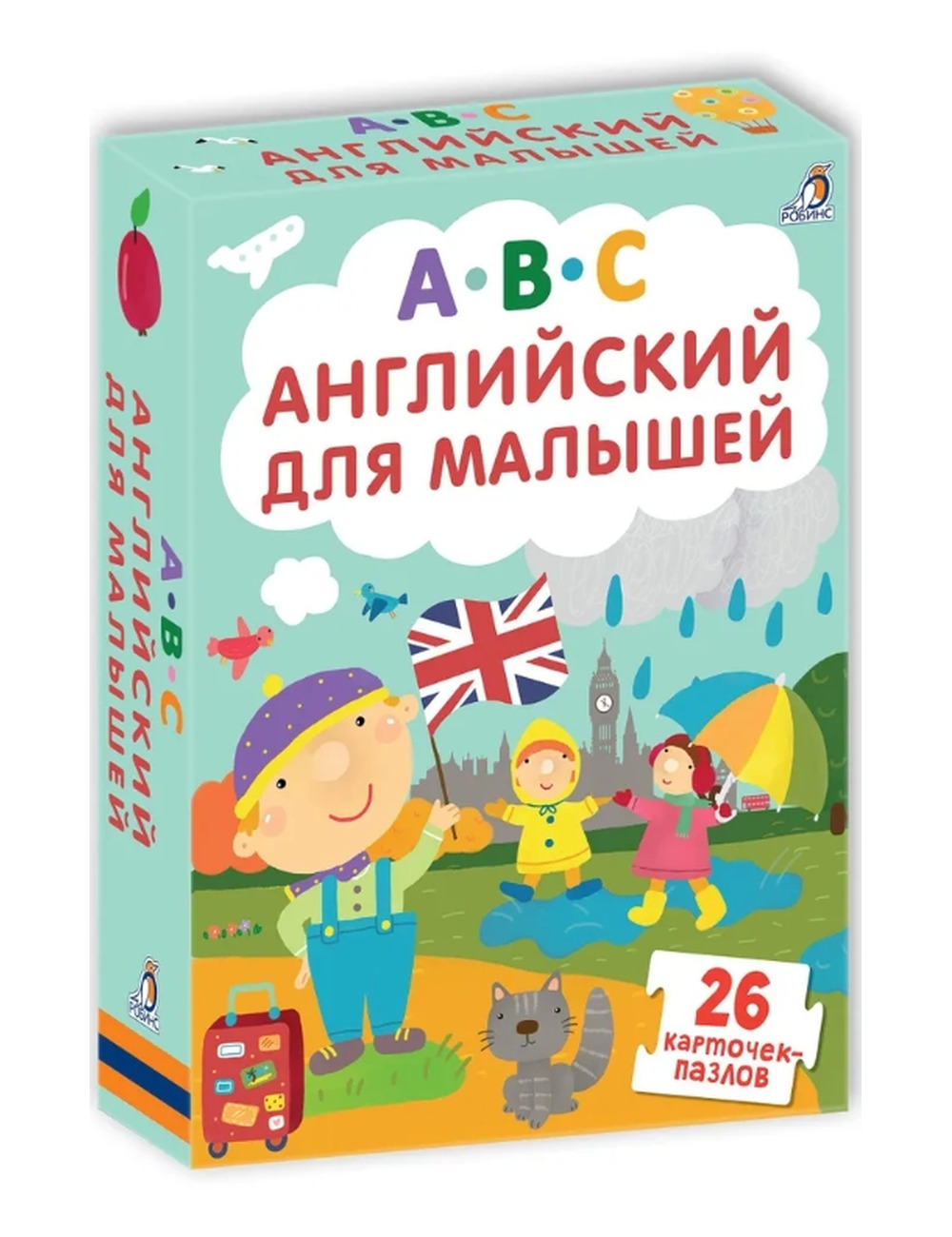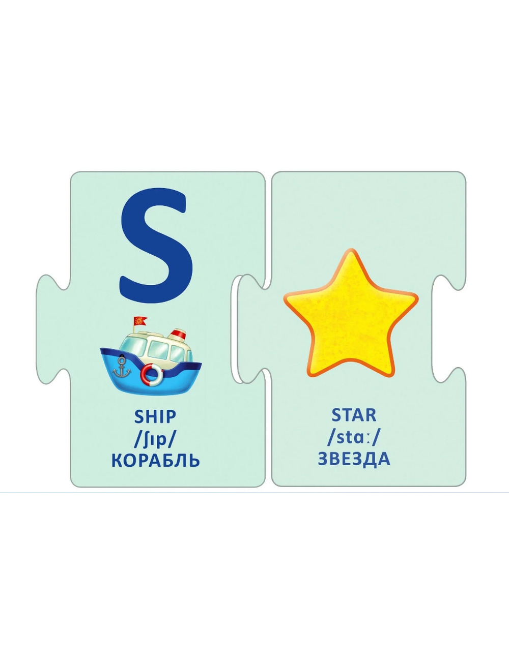 Набор включает в себя:- 26 карточек карточек-пазлов английского алфавита;- 2 карточки с подробной инструкцией и транскрипцией.На передней сторонке пазла - крупные буквы, картинка к букве, надпись на английском языке, транскрипция и перевод на русский.На оборотной сторонке пазла - крупная яркая картинка, слово на английском к ней и транскрипция.
