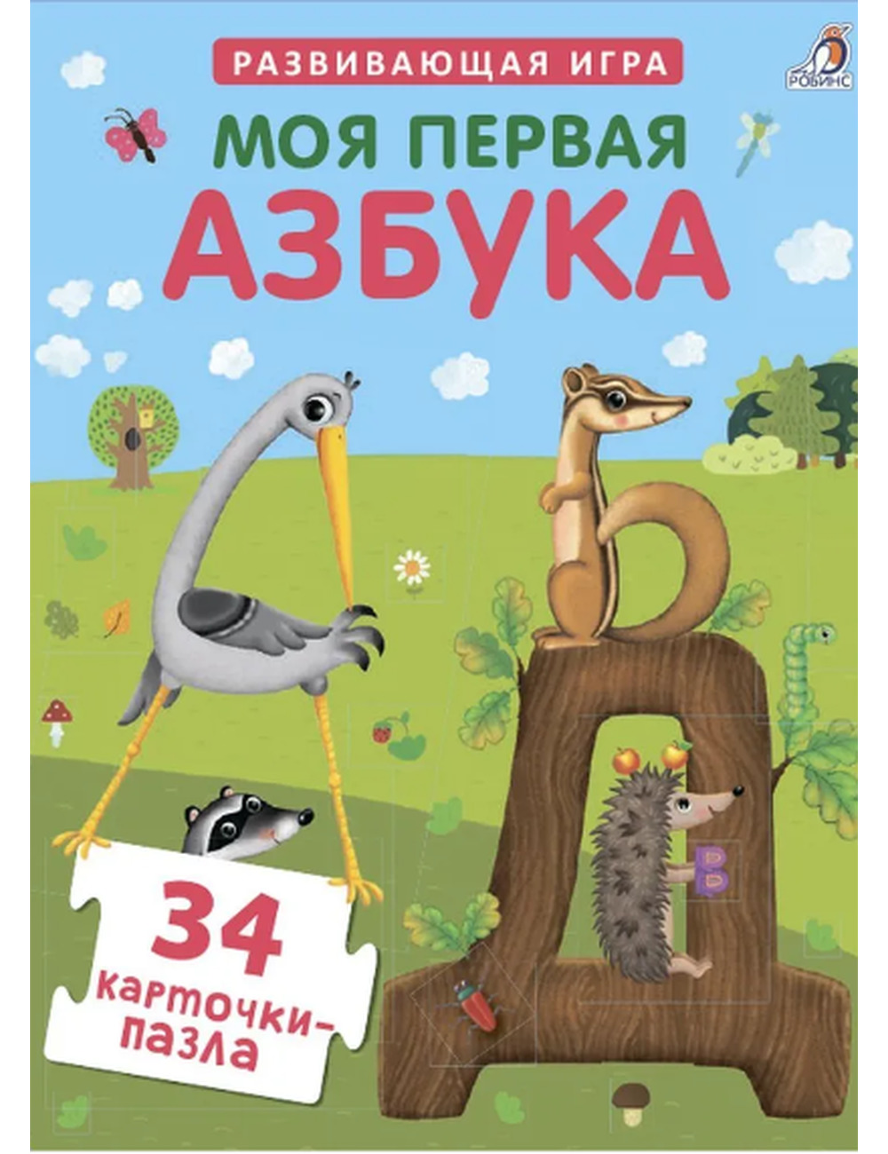 – 34 карточки-пазла с изображением буквы, предмета на эту букву и веселого двустишия.