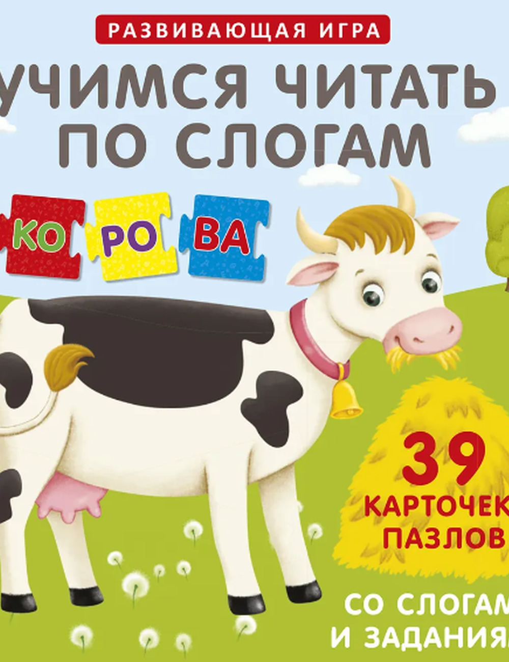 – 40 двусторонних карточек-пазлов с буквами, слогами и картинками-словами.