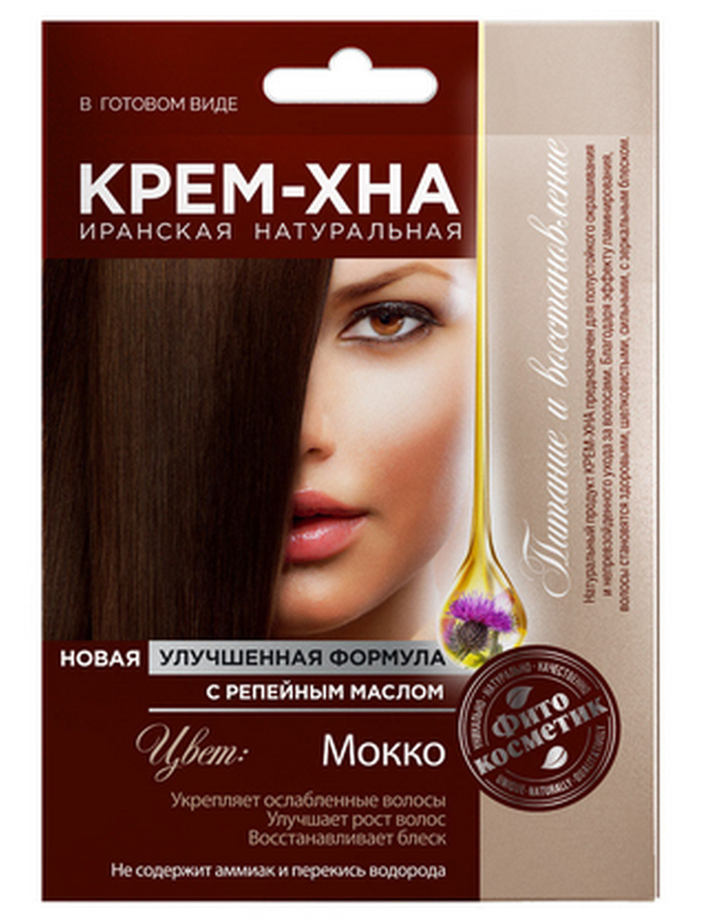 Инновационный прорыв в сфере окрашивания волос. Это натуральная природная краска, обогащенная репейным маслом, дарит волосам глубокий, сияющий цвет «Мокко», интенсивно питает, увлажняет, восстанавливает и оздоравливает их. Наполняет жизненной силой и энергией от корней до кончиков волос, придает ослепительный блеск и объем. Репейное масло усиливает капиллярное кровообращение в коже головы, питает и укрепляет корни и структуру волос. После использования крем-хны в готовом виде, волосы приобретают красивый насыщенный цвет, становятся более густыми, эластичными, упругими и шелковистыми и послушными.