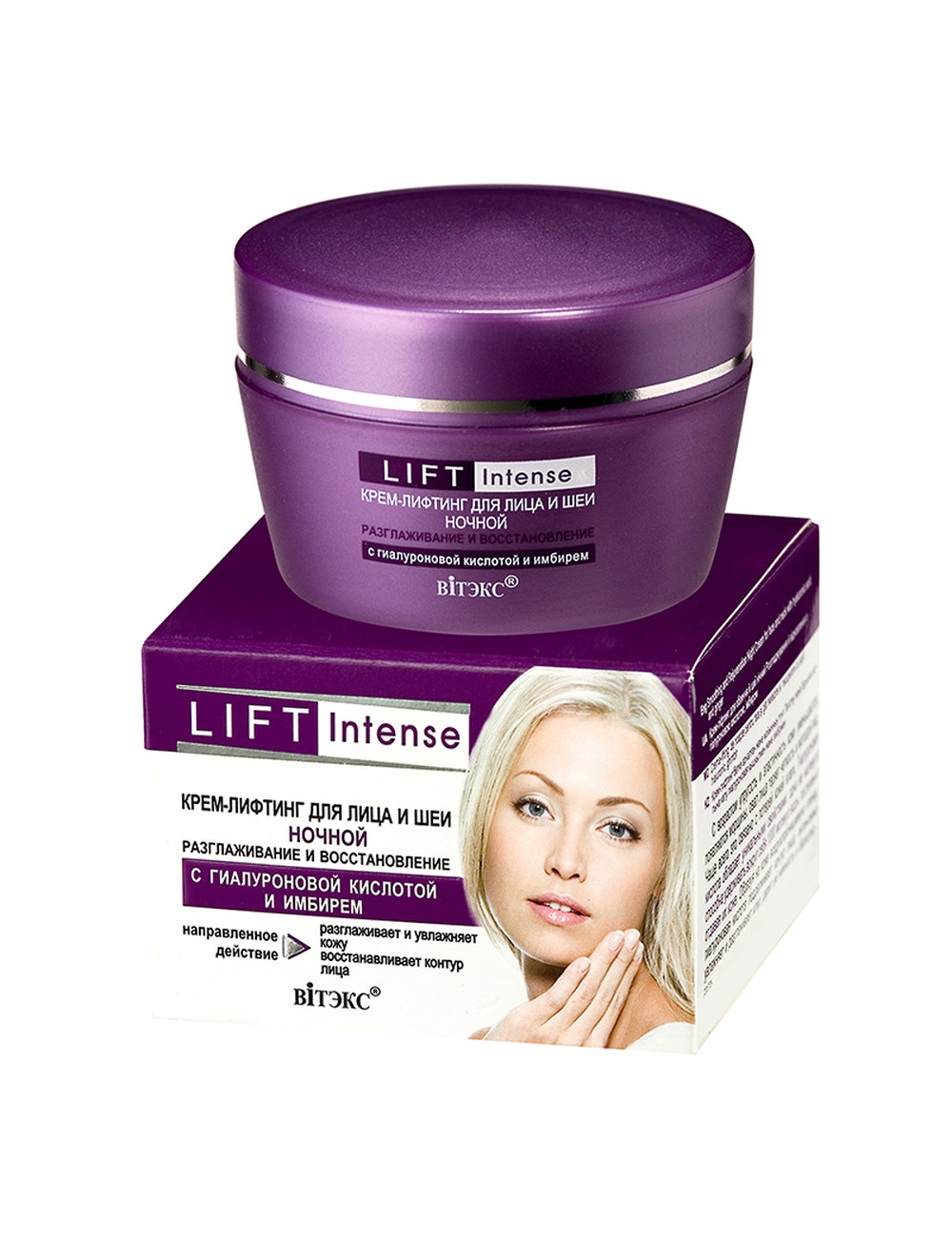 Крем-лифтинг ночной для лица и шеи Разглаживание и Восстановление с гиалуроновой кислотой, имбирем и комплексом масел.