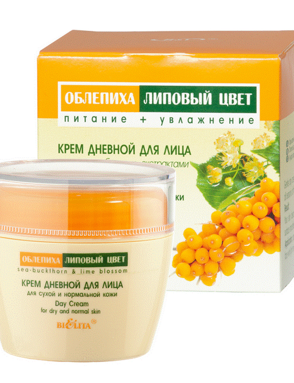 Крем дневной для лица для сухой и нормальной кожи ОБЛЕПИХА с маслом облепихи, экстрактами облепихи и липового цвета для сухой и нормальной кожи