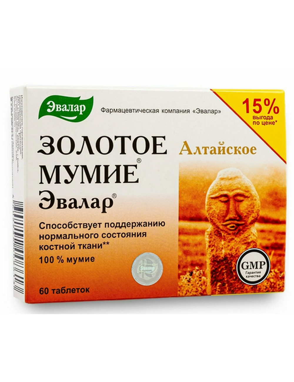 Золотое мумие от компании Эвалар – это 100% очищенное алтайское мумие, изготовленное по оригинальной технологии, которая позволяет максимально сохранить активно действующие вещества: витамины, аминокислоты и более 30 микро- и макроэлементов с высокой биодоступностью. Настоящий золотой стандарт алтайского мумие!