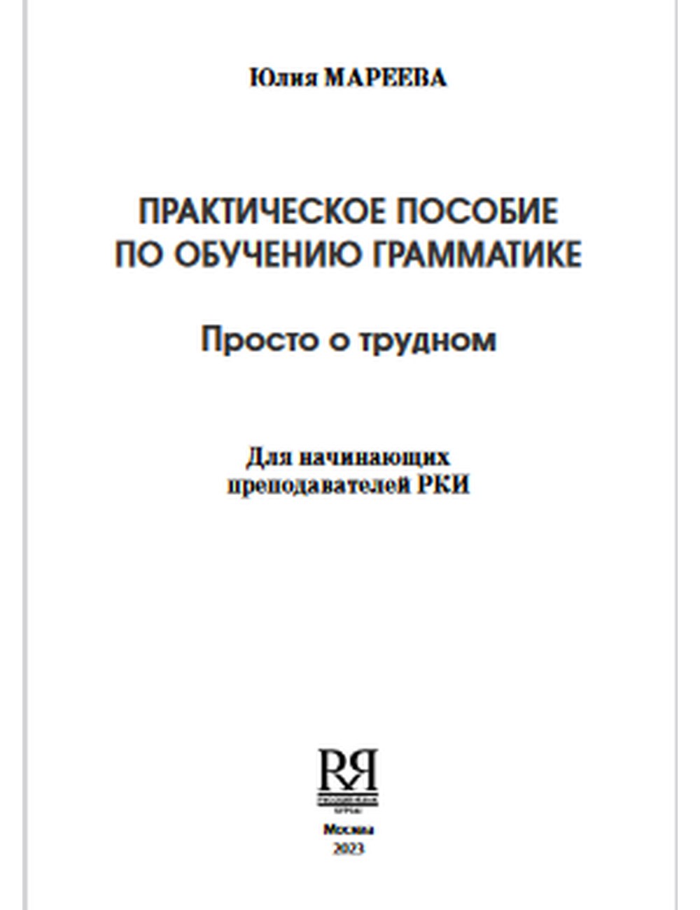 Цель пособия — заложить основы профессиональной компетенции будущих преподавателей РКИ в области практической грамматики для дальнейшей успешной работы в иностранной аудитории.