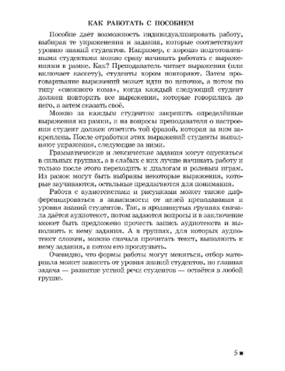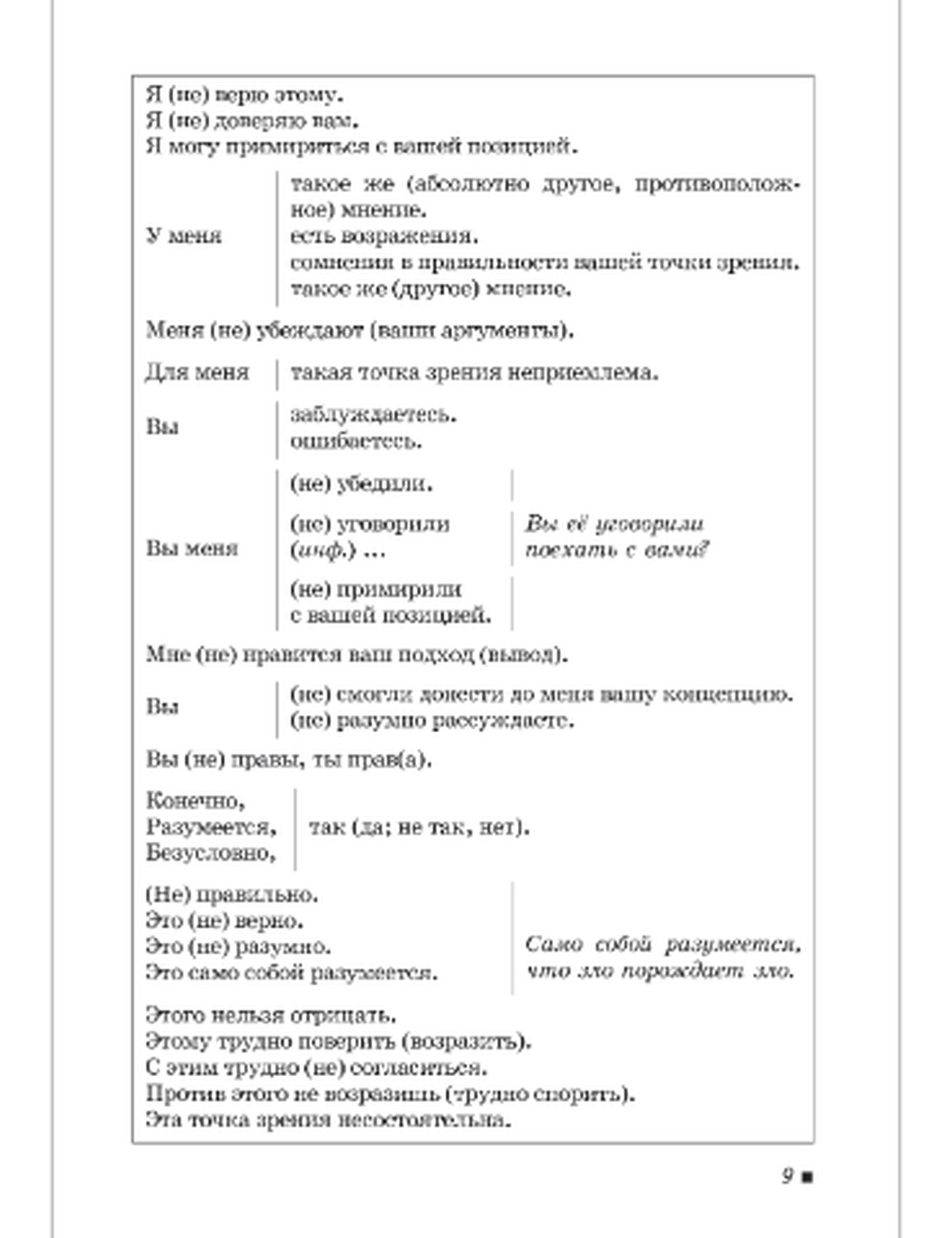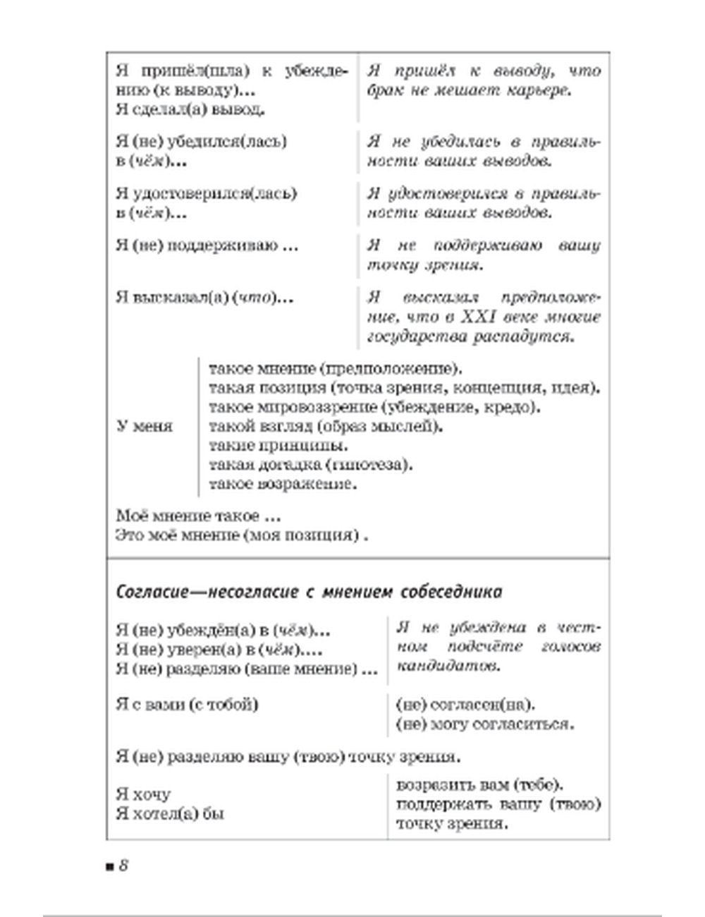 Данное пособие отличается принципом отбора материала: предлагаются речевые конструкции, выражающие отношение говорящего к событиям, мнениям, фактам, включаются тексты, тематика которых не учитывалась ранее в учебных пособиях.